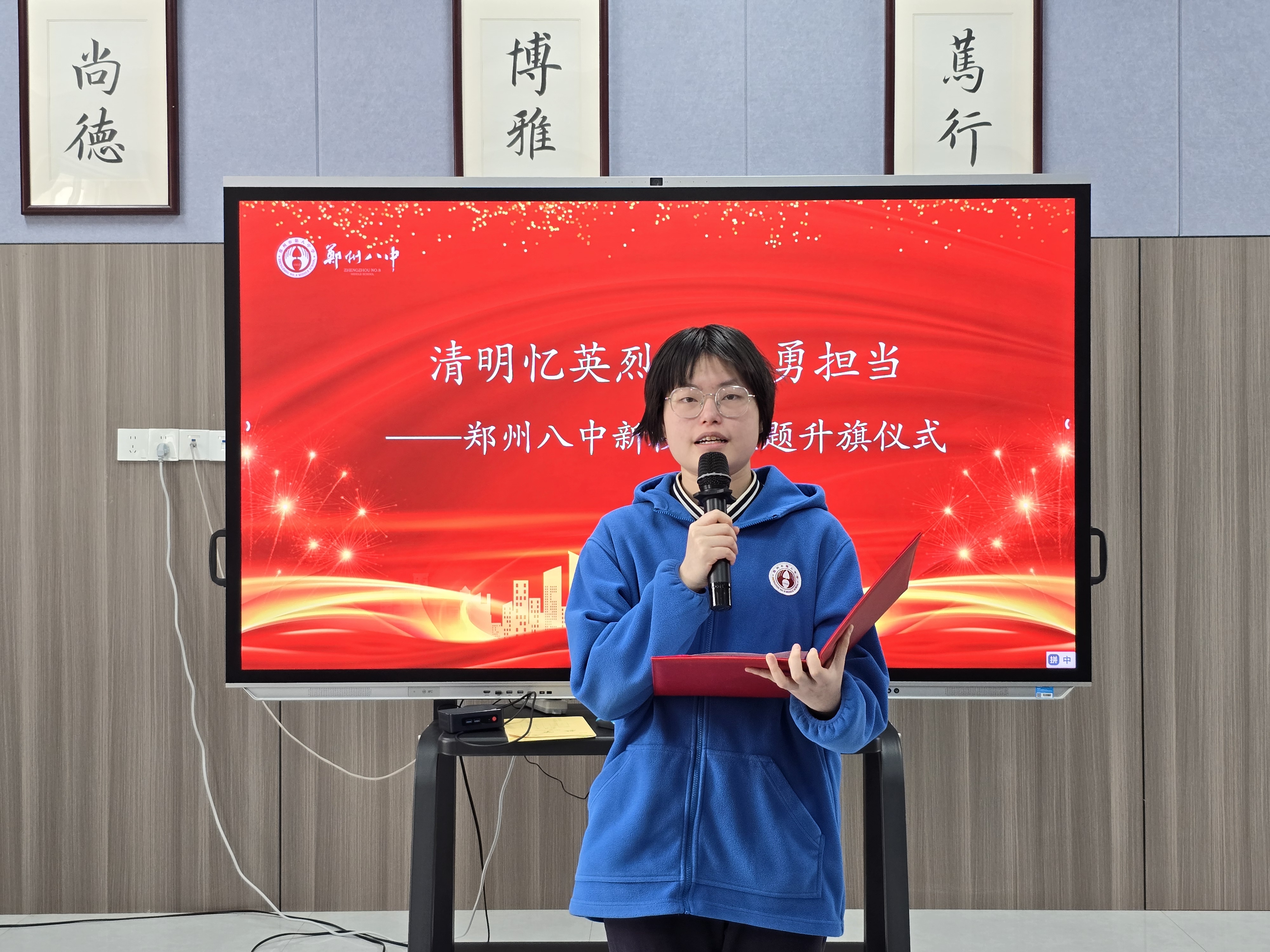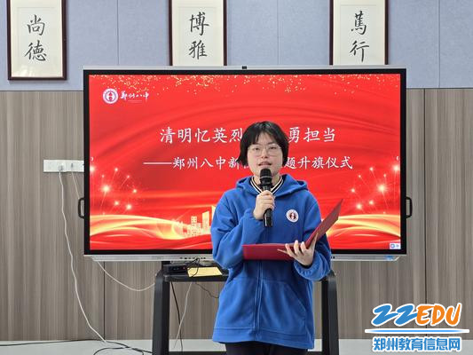 为了缅怀革命事业中为国捐躯的仁人志士,追思他们为国为民的高尚情怀,铭记源远流长的民族精神,以表达师生的敬仰之情,仪式最后,郑州八中新校区政教处副主任贾鹏带领全体师生默哀一分钟,表达对英烈的哀思。