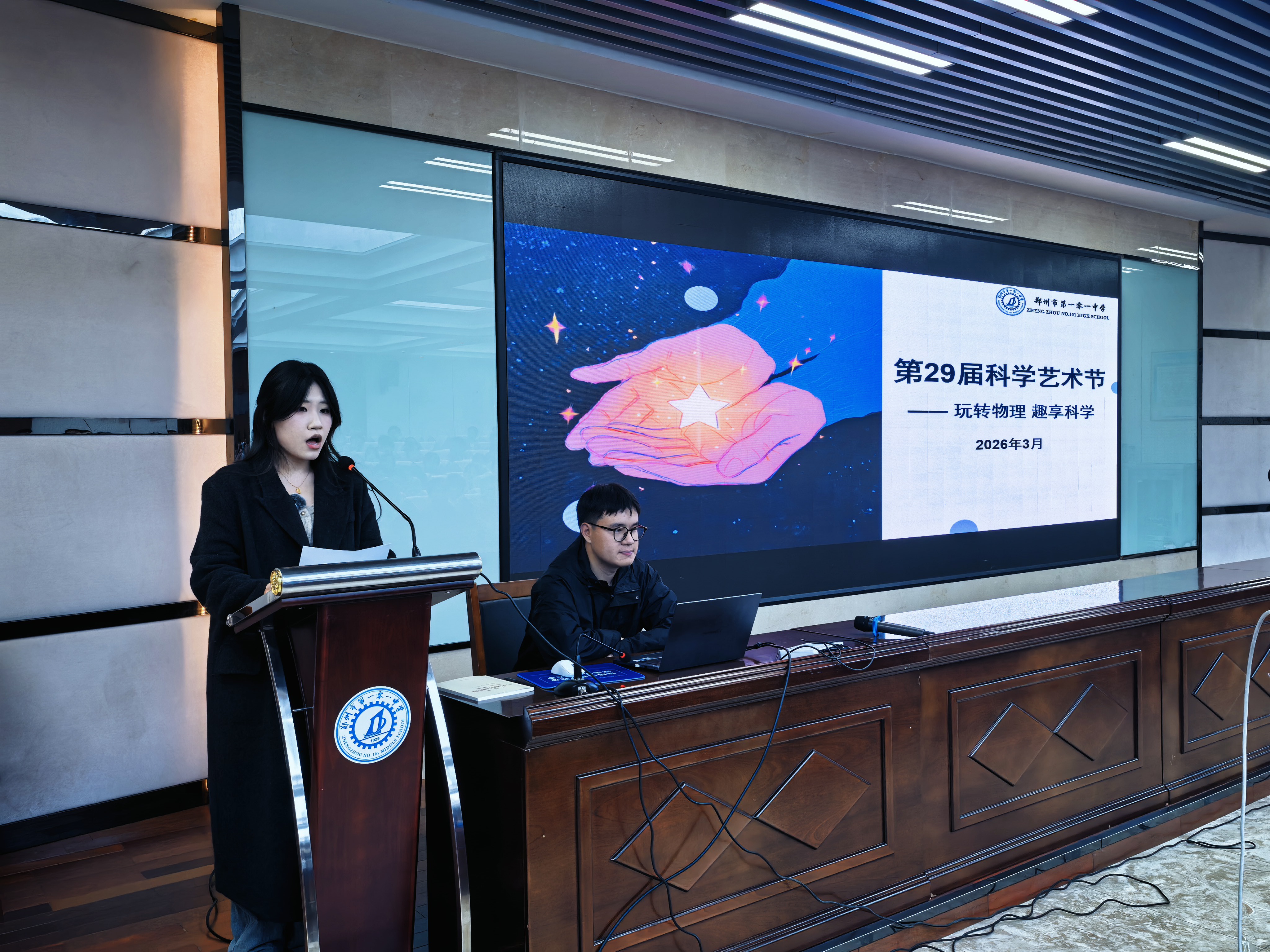 3月30日,郑州市第一〇一中学为期一周的第29届科学艺术节系列活动圆满落幕。本次活动以科技赋能、科学探究、艺术浸润为核心,分设科技前沿、科学实践、艺术展示三大板块,通过专家讲座、AI大赛、学科专场、才艺展演等多元形式,全面展现学校科技高中建设成果与五育融合育人实效,让科创精神与人文艺术在校园交相辉映。