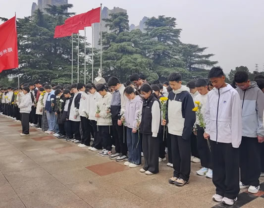 革命先烈纪念碑前,全体师生齐唱国歌、敬献花篮,默哀缅怀英烈;学生代表诵读致英烈信,学校领导致辞寄语,全体宣誓并绕碑瞻仰,致敬革命先烈。