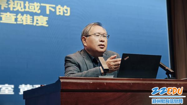 活动最后,郑州市基础教育教学研究室教研员黄利军以《评价体系与学科核心素养视域下的高考英语与关键能力考察维度》为题作总结发言。他立足高考评价体系与英语学科核心素养,深度分析了高考英语各题型学生的作答表现,重点强调阅读、写作板块分值占比高,是影响学生英语成绩的核心支柱;同时详细解读了高考听力题型的最新变化趋势,明确了听力学习在学科教学中的重要地位,并结合新课标要求,为全体参会教师系统分析了高考英语“四维”立体化的考察内容。黄利军充分认可了魏梦旭老师的课例示范价值,以及李志合、刘焕丽两位老师专题汇报的实践指导意义。