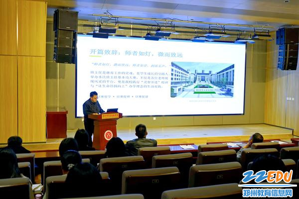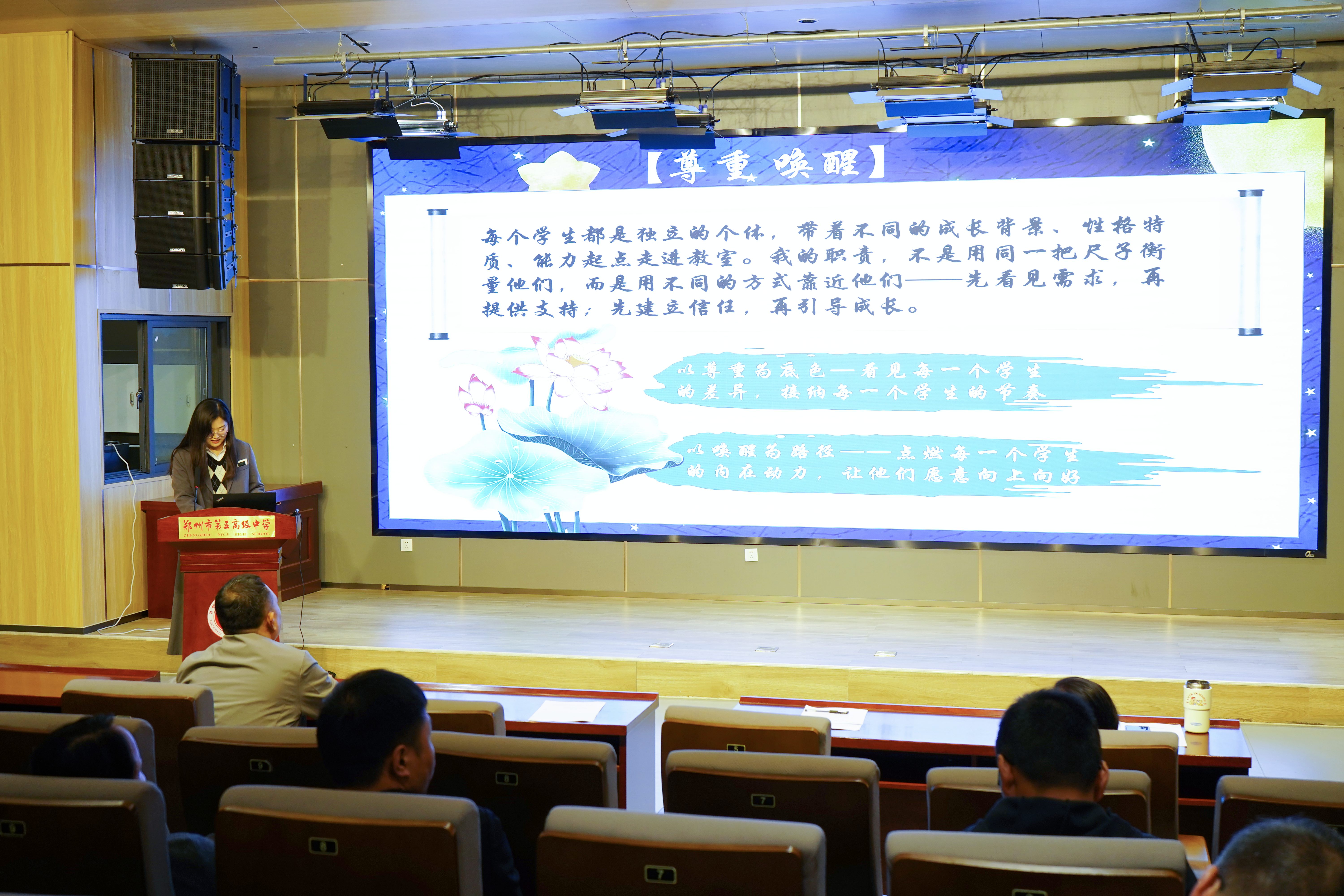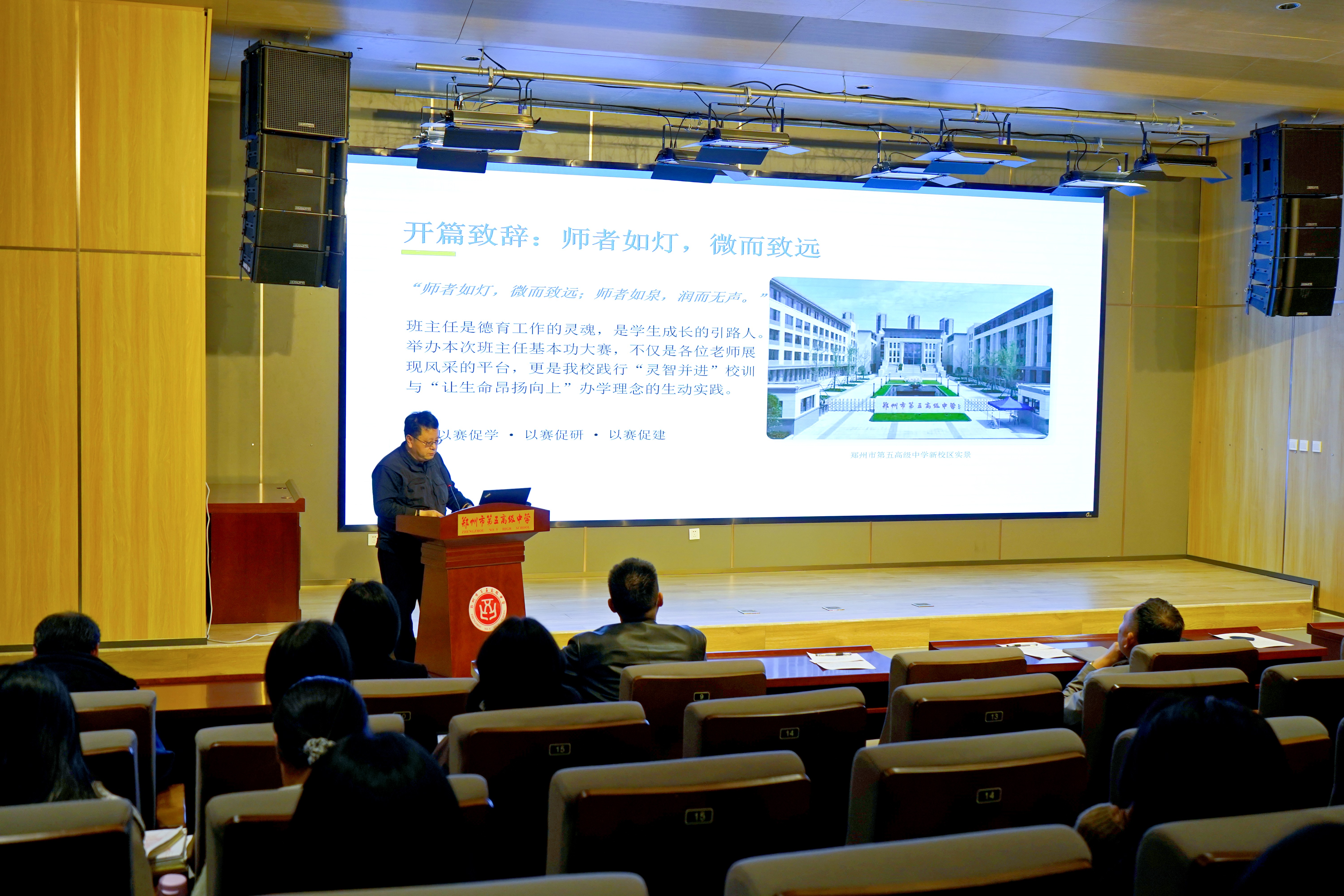为深入落实立德树人根本任务,强化班主任队伍专业化建设,4月1日,郑州市第五高级中学在学术报告厅开展第六届班主任基本功大赛。此次大赛以“传承初心担使命 培根铸魂育新人”为主题,由学校统筹组织,经初赛层层筛选,12名优秀班主任脱颖而出,同台竞技、各展风采。