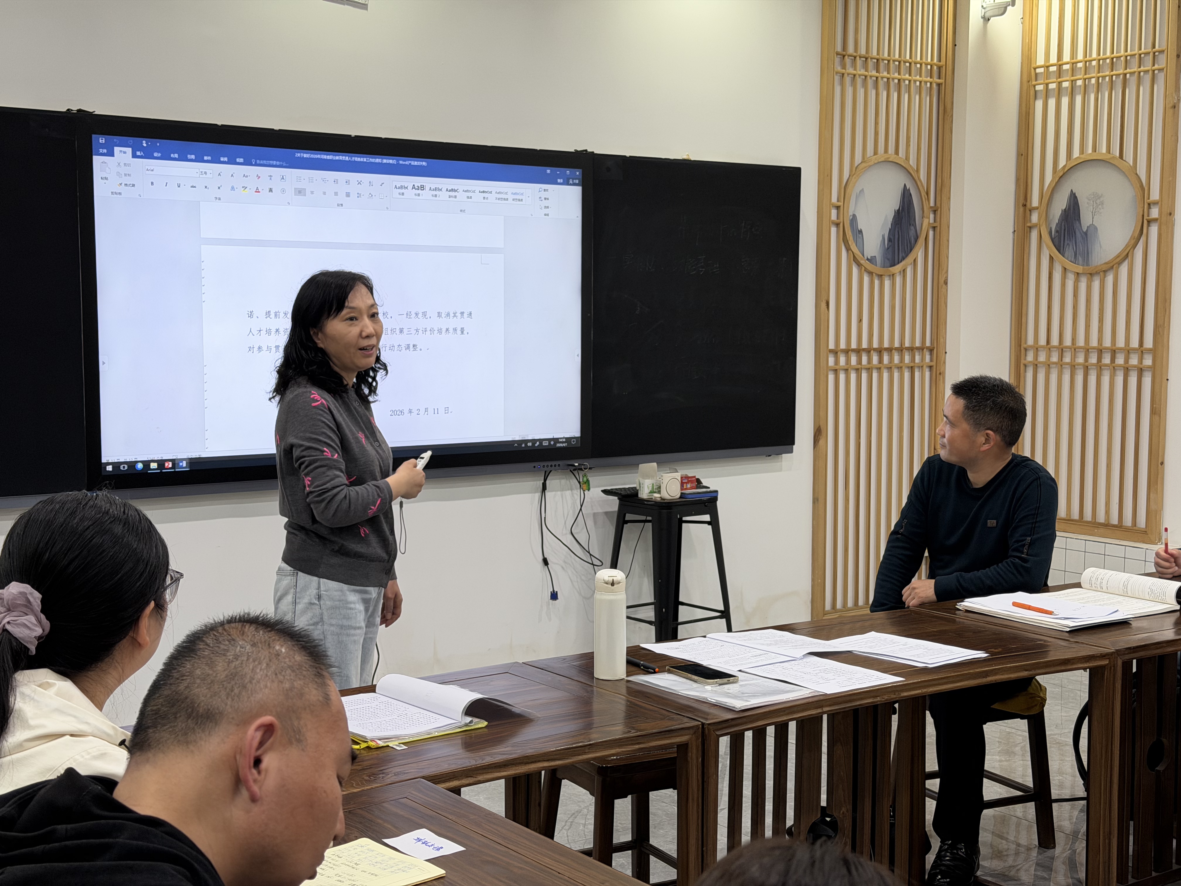 张琳在领学《教育部关于深化职业教育教学关键要素改革的意见》《河南省教育厅关于做好2026年河南省职业教育贯通人才培养改革工作的通知》文件后,传达了郑州市教育科学规划与评估中心职业教育教学研究室2026年工作要点。