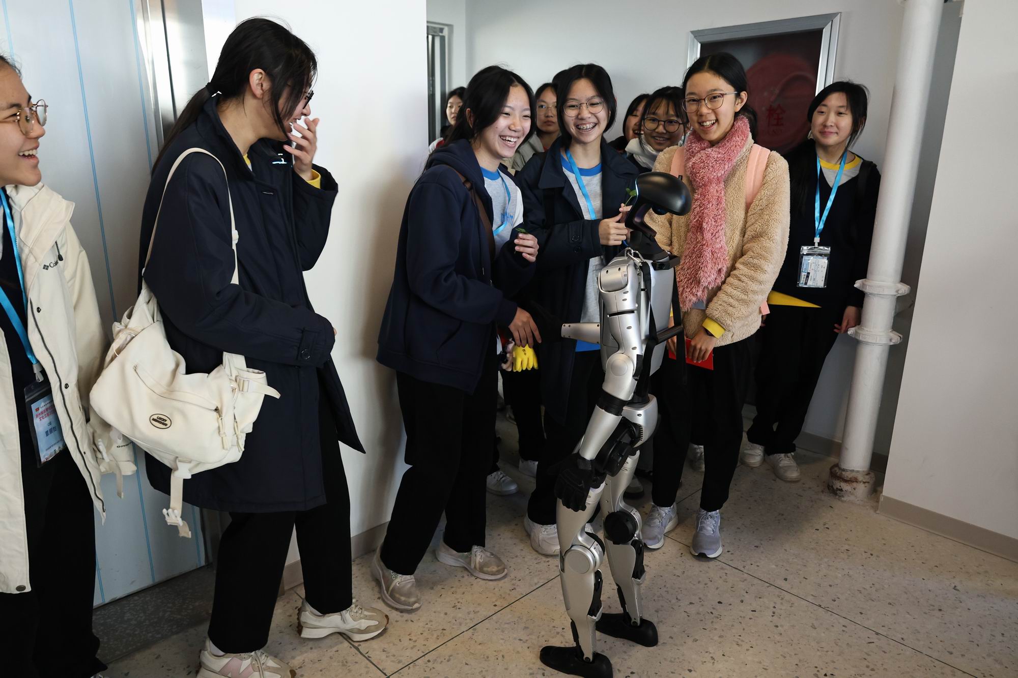 机器人欢迎香港学子来到学校“凡鼎(Finding)科创中心”