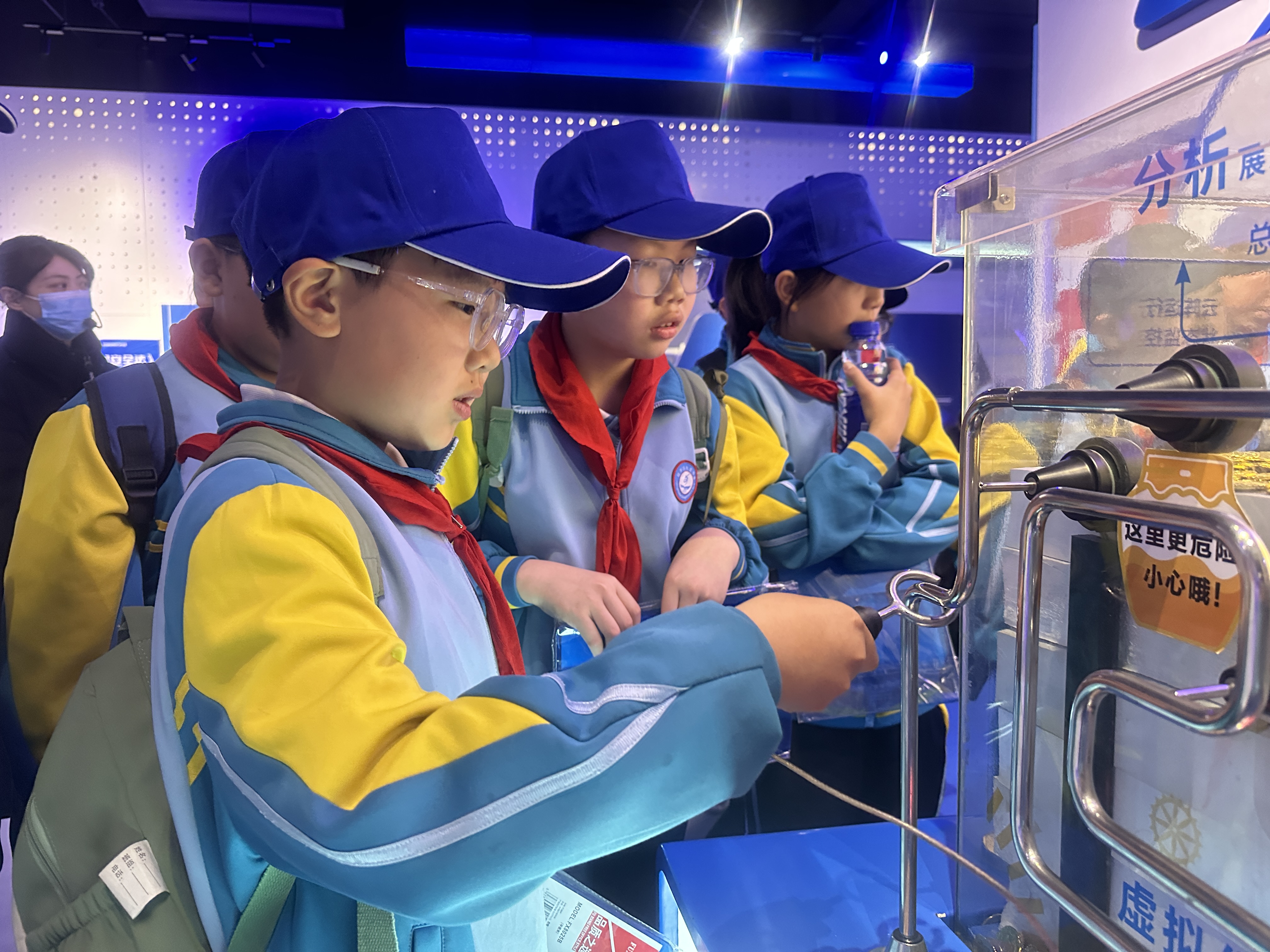 上午,少先队员们满怀期待来到网络安全科技馆,开启网络安全探秘之旅。作为全国知名的网络安全科普教育基地,场馆内反偷拍排查、恶意充电桩体验及网络安全投篮三大互动展台,通过将隐私保护与网络安全知识转化为实践体验,让同学们沉浸式感受网络安全的重要性,有效提升了同学们的个人信息防护意识。每一个展项前,少先队员们都认真聆听讲解、积极动手操作,纷纷表示学会了守护网络安全、保护个人信息的实用方法,争做网络安全小卫士。