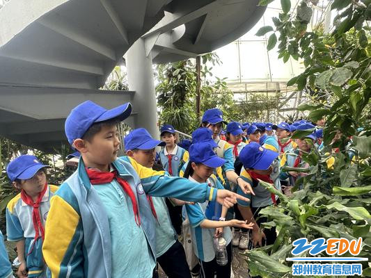 下午,少先队员们前往郑州植物园,开启自然探秘之旅,同学们依次探访沙生、乡土、水生湿地、牡丹芍药及热带亚热带植物五大展区,通过观察仙人掌、本土物种、水生植物、花卉及热带绿植的形态与文化,了解其生存机制、生态价值及文化内涵,在亲近自然中深化了对生态保护与家乡认同的认知。
