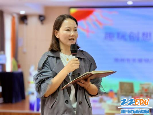 教师作品展示完毕后,往年获奖选手代表刘晓杨老师进行点评:“本次参赛作品构思精巧、亮点突出,特别是一些作品能充分融入中华优秀传统文化元素,立意新颖、教育内涵充实”。郑州市实验幼儿园教研组长陈晓东老师点评道:“本次参赛作品主题鲜明、形式多样,内容与操作难度不宜超出幼儿的认知和动手能力。”