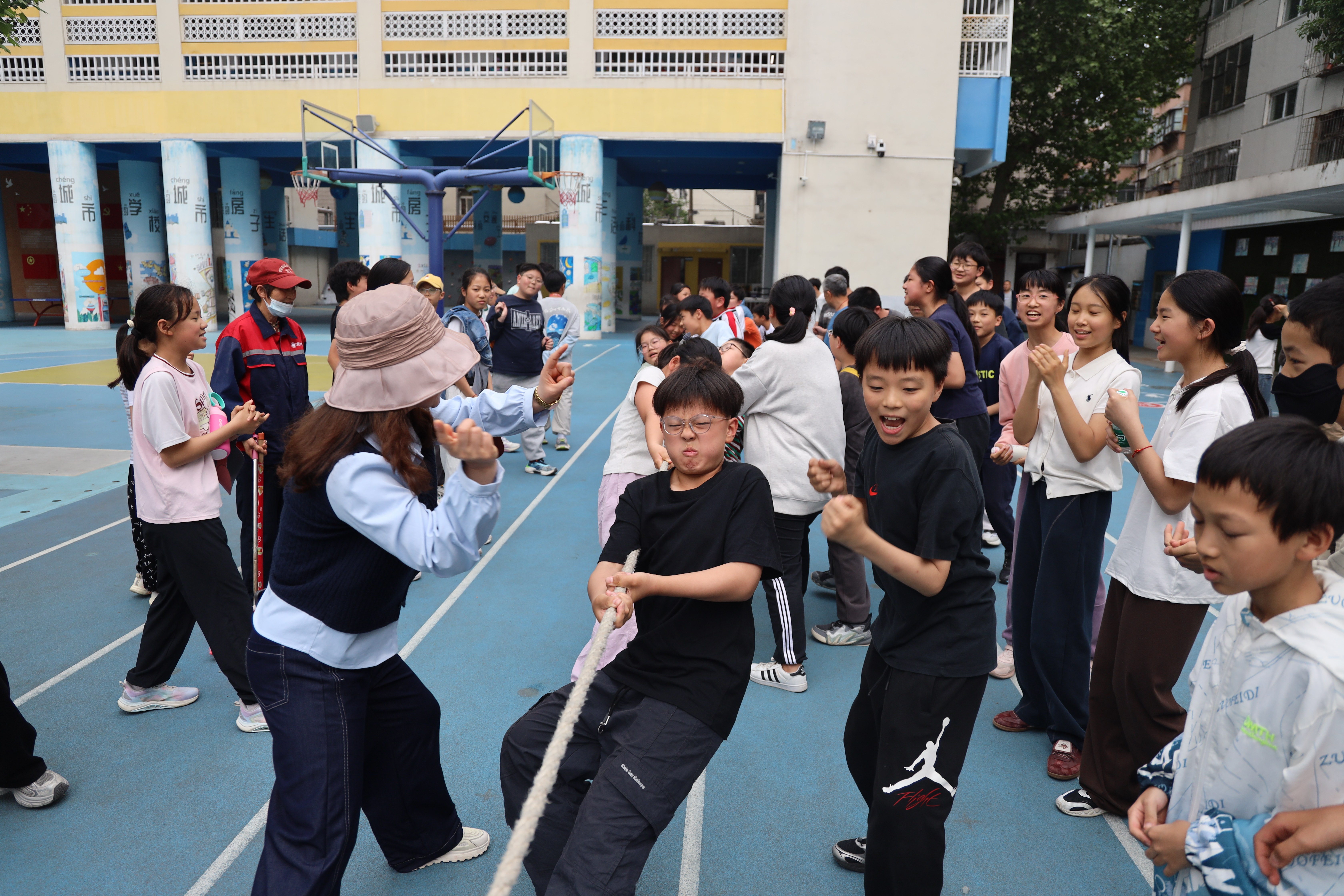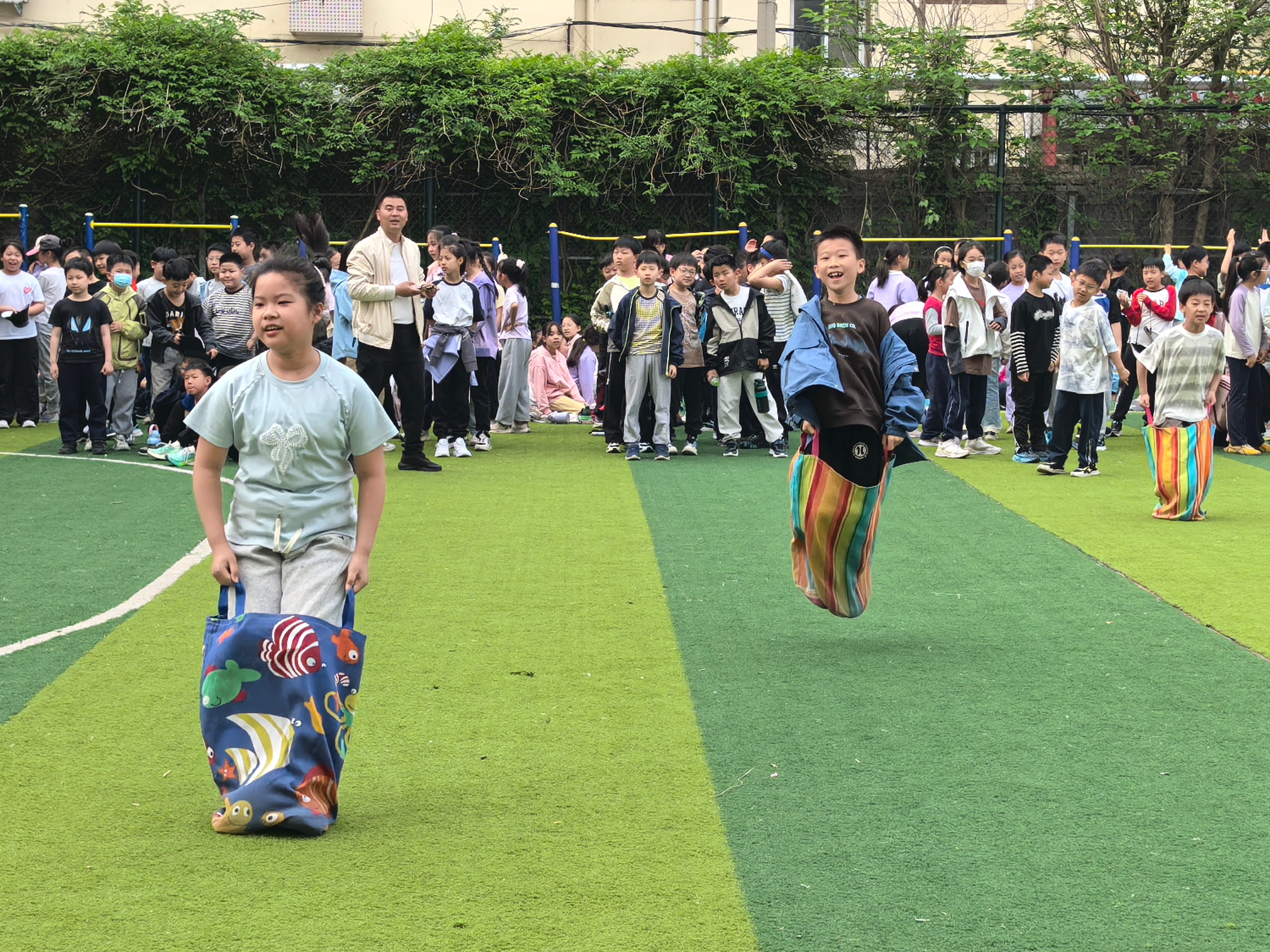 径赛跑道上,小运动员们如离弦之箭冲向终点;田赛区,实心球划出优美弧线,立定跳远一次次刷新纪录。趣味项目更是笑声不断:低年级的“袋鼠跳”萌态可掬,“搭桥过河”考验默契;高年级的“拔河”呐喊震天,“旋风跑”四人一组配合冲刺。裁判员公正执裁,班主任全程陪护,家长志愿者热情协助,整个校园洋溢着运动与欢乐的气息。