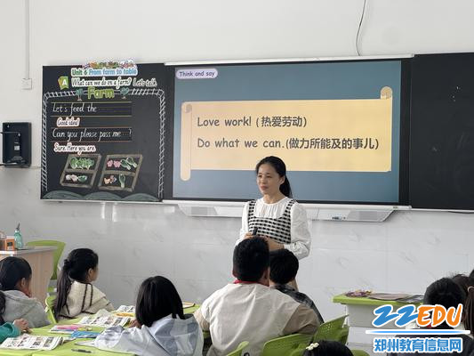 郑州航空港区实验学校小学部英语教师郭晓洁在课堂与学生互动
