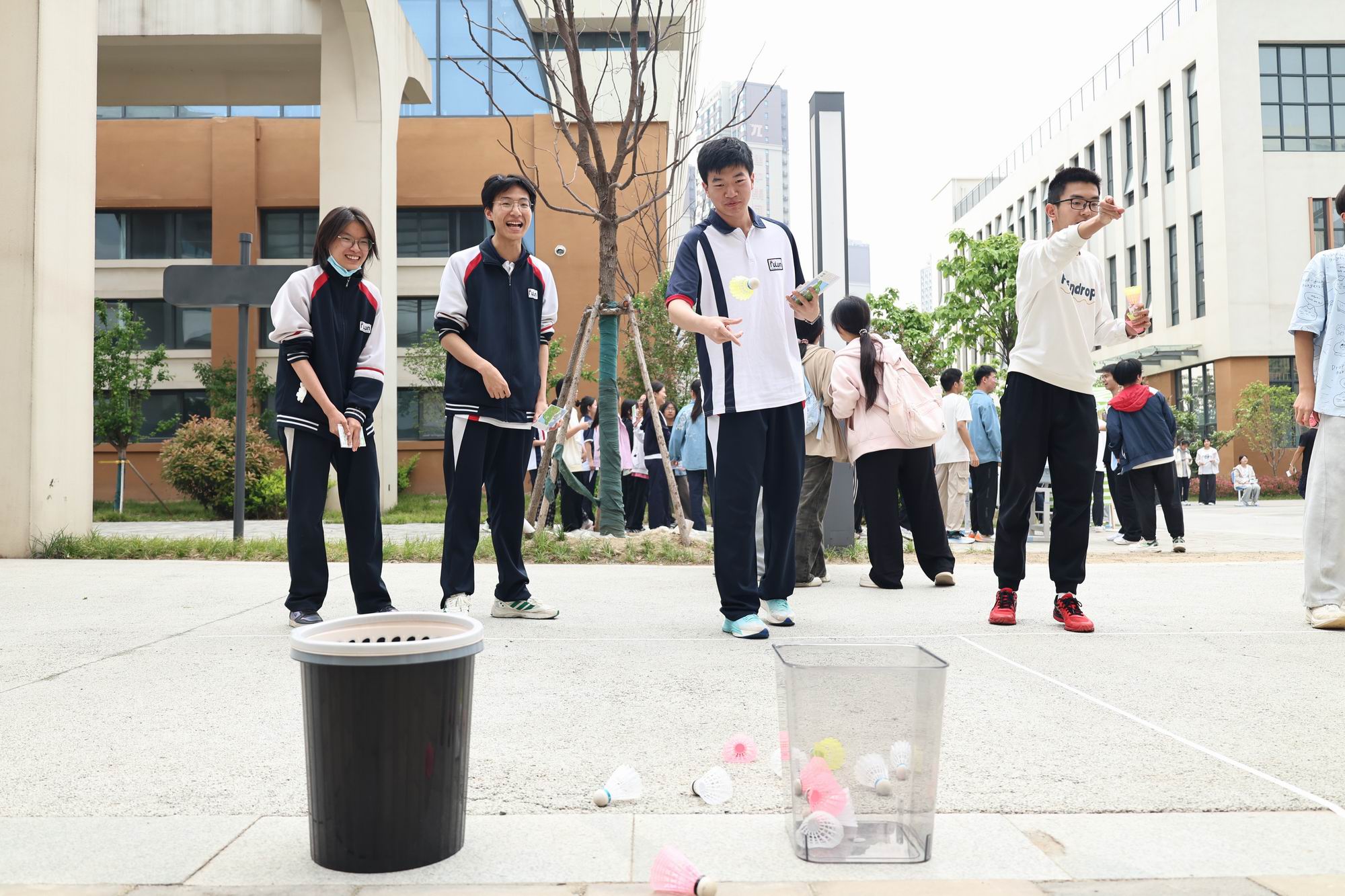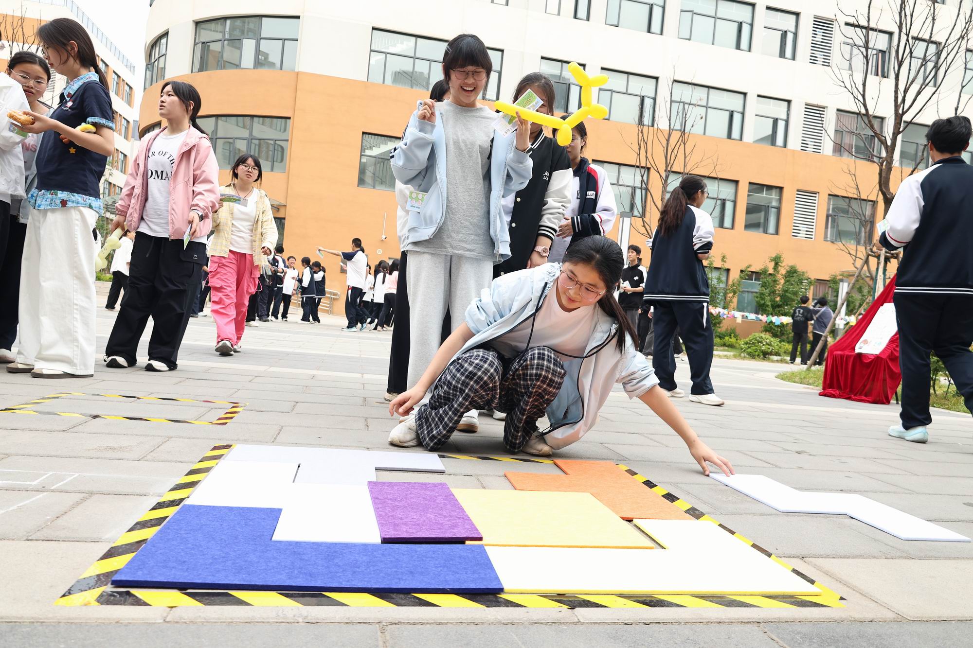 活动当日,操场区域热闹非凡。“吹气特种兵”“蒙眼锤人大战”等创新挑战项目点燃现场氛围,同学们在欢声笑语中释放日常压力;投壶、俄罗斯方块、丢沙包、小鹅套头等经典游戏区同样人气高涨,欢呼声与掌声此起彼伏。“想唱就唱”音乐角成为活力焦点,独唱、合唱轮番上演,随机舞蹈环节更是将气氛推向高潮,青春旋律在春风中肆意飘扬。