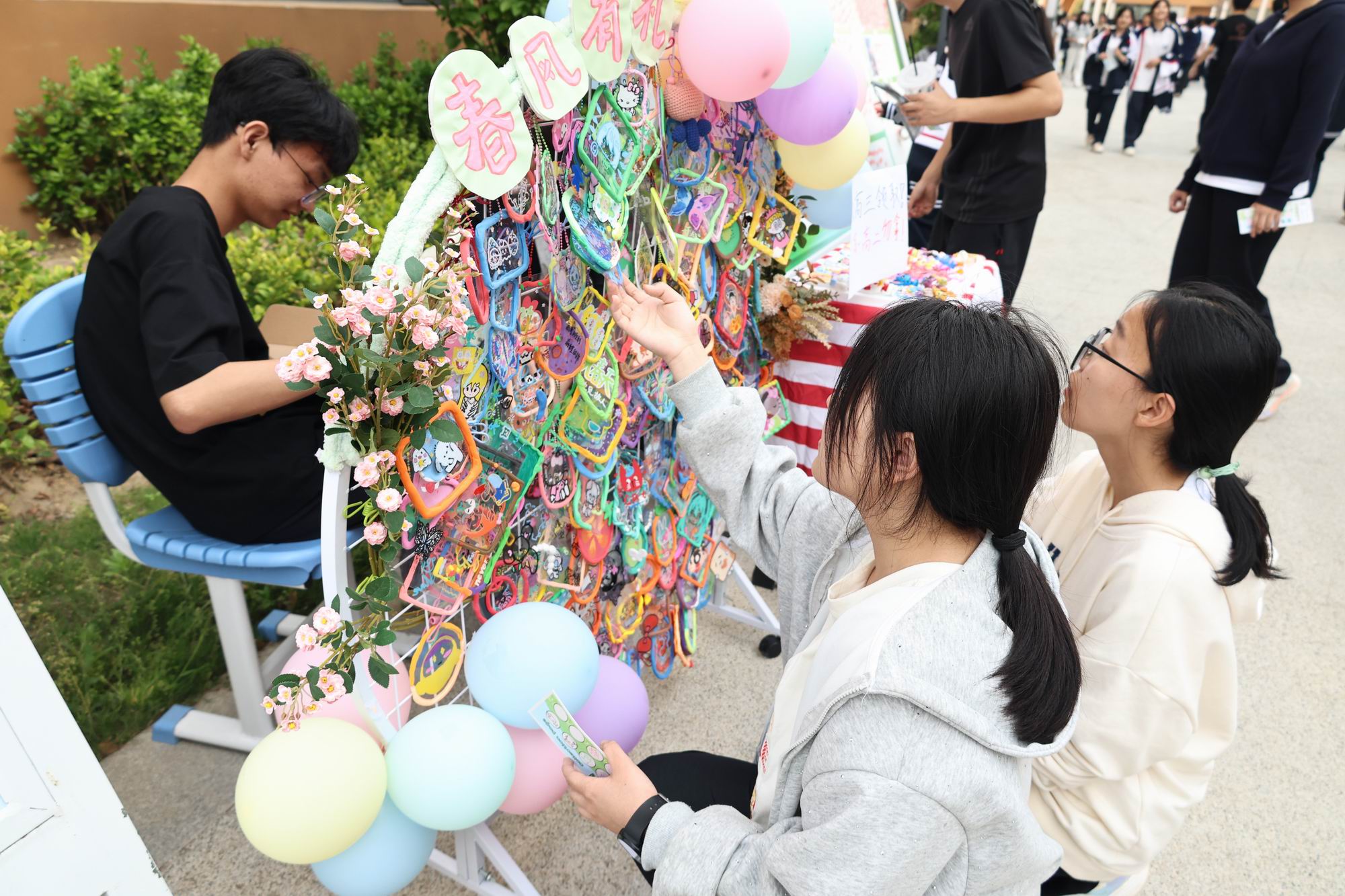心理课专属的“春风送暖”专区,学校高一、高二学生亲手制作的冰箱贴、石膏娃娃等200余份手作礼物,免费赠予高三学子,传递着学弟学妹的祝福。回音墙上,双向的温暖留言不断涌现,成为校园里最动人的风景。
