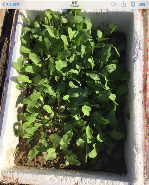 因为我们把菜种在泡沫箱里,泡沫箱在太阳光照在不同位置的时候,也会阻挡一些阳光,他们刚好阻挡在边边角角里,这样子太阳很难能照到。而在泡沫箱中间的那些菜没有泡沫箱阴影的阻挡,他们可以肆无忌惮的吸收阳光,所以长得会更快些。而那些疯长的植物同时也会制造阴影,所以,那些边边角角的菜想获得阳光,那就更难了。
