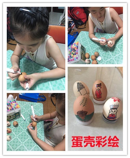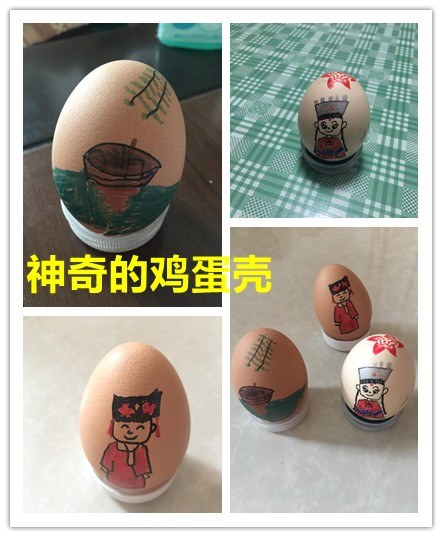 小朋友,如果给你一个鸡蛋,你会做什么?煮鸡蛋、煎鸡蛋、炒鸡蛋、蒸鸡蛋……那如果给你一个鸡蛋壳呢? 一天早上起床后,我来到厨房,帮助姥姥一起准备早餐,姥姥准备做一道丝瓜炒鸡蛋。姥姥把鸡蛋液倒入碗中,我接过碗,一边用筷子搅拌鸡蛋液,一边看着垃圾桶中的鸡蛋皮想着:蛋液可以做成食物,蛋壳能干什么呢?左思右想,突然想到之前看到的一篇文章,介绍在鸡蛋壳上作画,好像很有趣,我也试试吧。 我把想法告诉了姥姥,姥姥立刻表示支持,只见她在打开鸡蛋时,小心翼翼地从鸡蛋顶端开一个小口,从小口将蛋液缓缓倒入碗中,尽量保证鸡蛋壳的完整性。之后,我又把鸡蛋壳用水洗干净,晾干后放在一旁作为作画的原料。 吃过饭,我准备了颜料、画笔、马克笔、彩泥和矿泉水瓶盖,准备在鸡蛋壳上作画。看着手里“脆弱”的蛋壳,我的心扑腾扑腾的,一点信心也没有,“不会一用力就捏碎了吧?哎,真是万事开头难。”总要开始的不是吗?“加油!”我在心里给自己暗暗打气。拿起勾线笔,紧张兮兮地在鸡蛋壳上开始我的设计,先在蛋壳上画一条河,水面上漂浮着一条小船,小船在水面上投下暗影,最后,在蛋壳上方画上几枝柳条作为点缀。“完成了,蛋壳也没有破,哦耶!”我高兴地放下笔,擦了擦手心里因为紧张而出的汗。拿着作品去找姥姥,姥姥仔细观看的时候,我内心忐忑地等待着姥姥的评价。姥姥问我:“乐乐,你的作品叫什么名字呢?”我想了想说:“一叶扁舟。”姥姥听完,夸我画的不错。得到肯定的评价后,我顿时信心倍增,回到桌前继续我的“创作”。因为有了刚才的经验,我不再那样紧张了,但是还是不小心捏坏了一个蛋壳。接着,我又完成了两个作品,一个是《苗族姑娘》,一个是《满族少女》。 就这样,一个个看似不起眼的小小鸡蛋壳,经过我的“巧手”,变成了一个个美丽的蛋壳彩绘。小小鸡蛋壳不仅神奇,还让我体会到了彩绘的乐趣。小朋友,如果你也有兴趣,那就快快来尝试一下鸡蛋壳彩绘,尽情发挥你的想象,会有不一样的收获! 小小蛋壳真有趣, 平平无奇有魅力 画笔伴随想象力, 蛋壳彩绘真神奇! |
