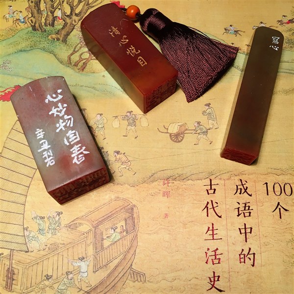 别看印章小,用处特别大,是我阅读润笔的印证。最早在三年级期末,随着自己书籍的增多,爸爸送我一枚藏书章。印面为铁线印文“心悦藏书”,边款行楷“清心悦目”,我在郑州教育博客的昵称,是我最喜欢的印章。每当填置新书,甚至新发的课本,我都会在扉页上郑重地聆印。如此一来,这些书就会一直陪在我身边,拥有醒目而特有的印记。