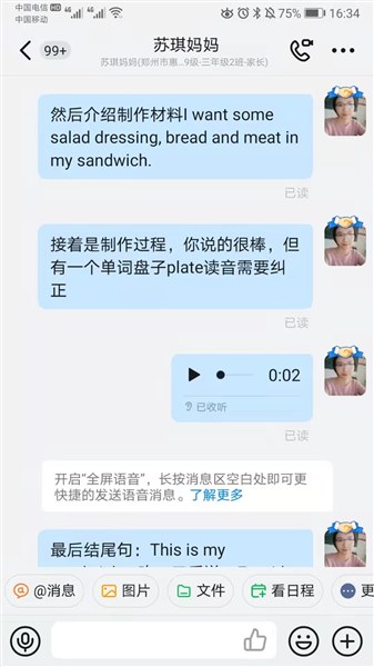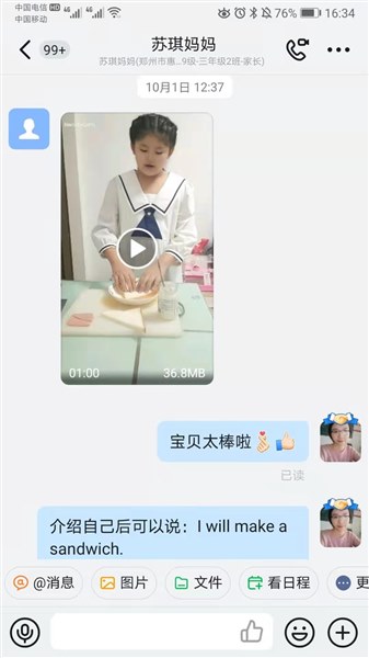 | 国庆节,来点“有味道”的作业 国庆节就要来了,忙碌了一周的我既高兴又心急,七天长假举国欢庆,头疼的是布置点什么作业好呢?秉承“双减”政策的理念,作业必须少而精。我在上节前最后一节英语课,用英语讲关于三明治的制作过程时,突然脑内灵光乍现,哈哈有了! 快下课时,我在班级里说:“同学们,明天就是国庆节啦,我们来点‘有味道’的作业,大家猜猜是什么?”。同学们听了纷纷瞪大眼睛,异常兴奋地大声说:“老师,快说是什么呀?”看着一双双好奇的眼睛齐刷刷地盯着黑板,我高兴地说:“我们假期给爸爸妈妈制作一个美味三明治吧,仿照课本P29的制作过程,可以添加父母爱吃的食材,用英语介绍并录制下来,谁能完成这项美味作业。”同学们听了纷纷举手示意自己会做。 放假第一天中午时分,三二班的苏琪同学就迫不及待地发来了她的杰作,她首先进行自我介绍:Hello ,my name is Amy. I’m in class two, grade three.然后介绍制作三明治的食材:This is a salad dressing. This is a bread. This is a meat.接着是制作过程:①Put the bread on the plate. ②Put the salad dressing on the bread. ③Put the meat on the salad dressing.④Put the bread on the meat. This is a sandwich. It’s for my mother!(递给妈妈)。 看到孩子在制作食物的过程中很好地把第一三单元的知识融合到一起使用,我非常开心。而且她还学会了课本中没有出现的单词salad dressing,因为她想要用这种食材,就会主动去搜寻和识记这个陌生单词,无形中扩大了自己的词汇量。我积极给与孩子肯定评价后,又指出了她在用英文表达时出现的小问题,在介绍食材时,因为salad dressing,bread 和meat是不可数名词,前面不加“a”,可以这样说:I want some salad dressing, bread and meat in the sandwich. 以做促学,引导孩子动手动脑,不仅能巩固加深他们对所学内容的理解运用,更能启迪其融会贯通知识和发散思维。 同时,让孩子们为爸妈制作三明治,实现学科融合,为德育课程助力。鼓励孩子多多参与家务,体会父母不易,也是五育并举,全面发展学生素质教育的一次尝试。听着视频里孩子妈妈的欢笑声,看着孩子脸上的明亮容颜,我觉得这真是一次“美味”作业,因为它甜到了家人和孩子的心里。 |
