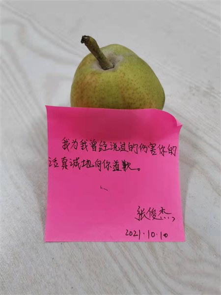 | 哭泣的张冉 下午大课间,我正在班里筹备这学期“互助小伙伴结队”的事。同学们自行选择了自己的结队搭档,选好之后报给班长,班长写好名单给我后,为了防止出错,我在班里又念了一遍,但当我念到“张冉和杨溢结队时”,只听张冉在位置上直接大声说:“我不要和她结队。” 尽管当时我已经猜到她不和杨溢结队的原因(因为她选择和杨溢结队后,孙惠茹又和杨溢结队了,而孙惠茹和她有矛盾),但当着全班学生的面这么直接是十分不合适的。于是,我赶紧把她仨都叫了出来进行调节。 张冉是一个非常敏感,也非常直率的小姑娘,出来之后她说着说着就哭了起来,而且哭得很伤心,我没有说话而是一直在听她说,因为我知道此刻她最需要的是倾诉而不是安慰。 也许是终于有了倾诉的机会,她不再顾忌,说着说着就说到了我和她之间的事上。 “老师,你知道吗?其实我有很长一段时间可恨你,因为你在七年级军训时说我:‘连这动作都做不好,真不知道你是怎么进这个班的!’当时你说这话时候表情真的很绝情、很恶毒。” 张冉当时的满脸泪痕和泣不成声,让我没有解释的勇气,也让我深刻感受到我这看似不经意的一句话,对她的内心造成的伤害是多么严重。“恶语伤人六月寒”真的说的一点都不夸张。当时我站了半天,就说出了一句:“我为我不经意的一句话对你造成的巨大伤害感到万分抱歉。”是的,我当着其他的同学给张冉真诚地道歉。我认为这是当时最理所应当的事,因为学生和老师之间一定要是平等的。 但我知道这句道歉相比于我对张冉造成的伤害而言,真的是太轻太轻,中午,我又在她桌上放了一个贴有便利贴的水果,便利贴上写着:“我为我曾经说过的伤害你的话真诚地向你道歉。” 当然这件事也引起了我的深刻反思:我是不是对学生还是过于严格?我真的做到和学生平等相处了吗?如果我做到了,为什么我当时还会说出那样的话呢?我要如何做才能让这样的事不再发生呢? 我的脑海中现在还印有张冉当时伤心哭泣的样子,而且她会一直印在我的脑海里,她会时刻提醒着我:要发自内心地接纳学生,尊重学生,平等地对待学生,不要再让自己的语言伤害了学生。