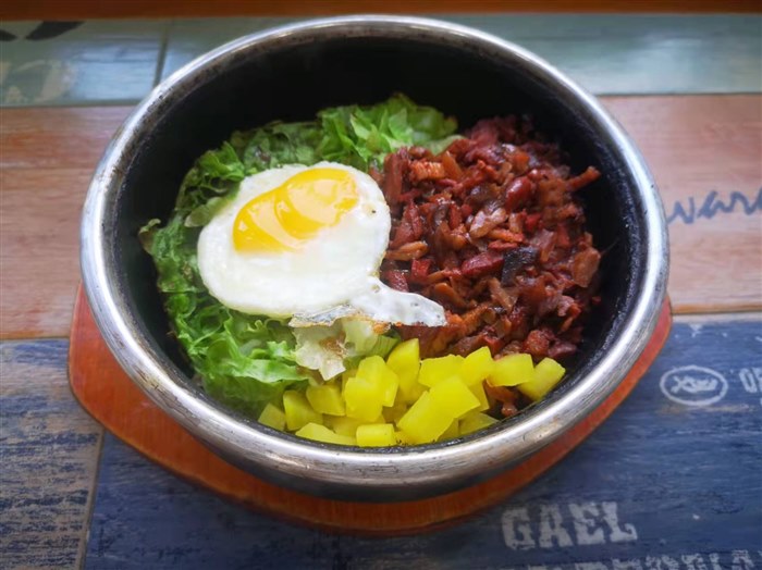 见面的第一句话我便问她孩子呐,原来她把孩子放到了旁边的韩国烤肉饭餐馆里面,自己一个人到马路边接我,我便数落她怎么把孩子一个人放那里,于是她放心的说跟老板打了招呼,让他帮忙盯一下,于是我们俩赶忙去到餐馆发现小朋友自己一个人在二楼安静的吃着自己的烤肉拌饭!王发小已经帮我点好了中午饭,我还以为她家就在附近,结果我以为错了。她说这旁边是大润发超市,离她家还有一段距离,她带孩子提前出门来接我,顺便在这里吃个中午饭再回家!小朋友收到巧克力豆礼物非常的开心,在礼物的哄骗下连吃饭都变得更乖了!