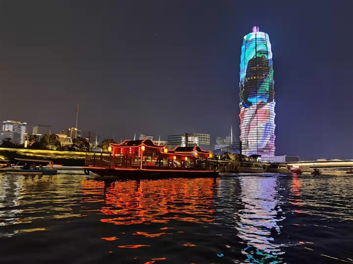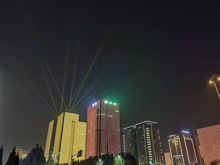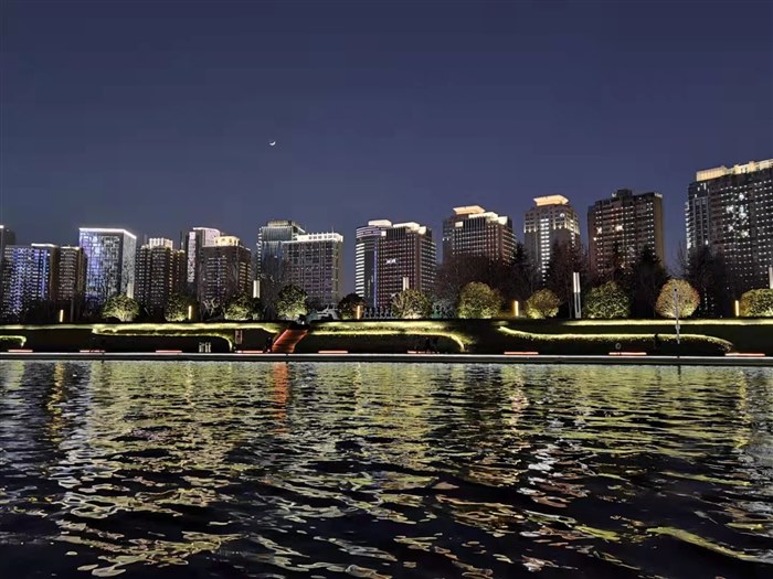 虽然在西区生活上学都很方便,但是在西区生活久了会发现没事去东区转转也很好,东区的夜景很美,傍晚CBD、北龙湖、智慧岛的灯光慢慢亮了起来,夕阳西下,那鳞次栉比的高楼大厦的灯光秀组成了绝美的光与影,一幅美轮美奂、灯火辉煌的光影世界呈现在市民面前,道路两旁停着许多前来观赏城市灯光秀市民的汽车。真是夜景美如画,微风醉市民。