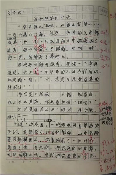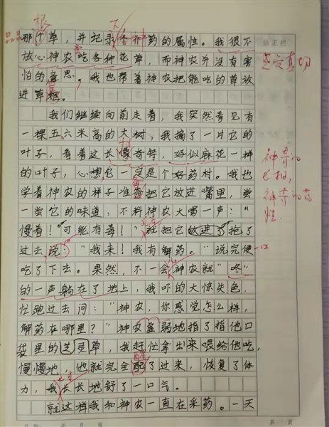 “尝百草之滋味,水泉之甘苦……一日而遇七十毒”。忽然,书中的文字像漩涡一样,用一只无形的大手把我拉了进去,我吓得立刻闭上了眼睛。只听“啪”的一声,我便摔倒在草地上。