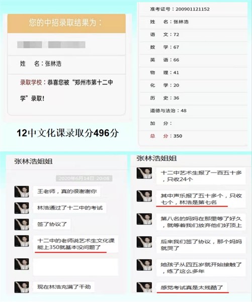| 今年,郑州市区共有60201名初中毕业生报名参加中招考试,普通高中招生计划42960人(公办普通高中学校实际录取20823人,录取人数占普通高中招生计划数48.47%)。从上面数据可以看出,今年郑州约有1.7万初中毕业生没有高中可上,而去年只有1.5万人。由此可见,中考越来越残酷,淘汰率逐年升高! 常言道:“士气不可无,傲气不可有”。伴随着郑州中招考试竞争愈发激烈,班主任鼓舞好班级士气,引导学生坚定信心,树立合理目标,无疑是一项非常重要的工作。 一、知晓政策,有的放矢 对于绝大多数同学和家长来说,并不是很熟悉中招考试相关的政策。所以,进入九年级后,班主任有必要对学生和家长宣讲清楚中招考试相关政策,如录取分数线、分配生、特长生、宏志班、重要的时间节点等信息,引导学生和家长结合自身情况,清晰定位,明确知晓后面都有哪些重要事项,应该怎么做。 残酷的事实告诉我们,不是每一个学生都能考上高中,或者适合上高中,班上必然会有一部分学生要去中专院校,但这并不意味着以后这些学生就和大学无缘,国家针对中专生有“对口升学”政策,对口升学和普通高考同一时间考试,考上大学后享受的待遇完全相同,优势是只考语数外和专业课,试卷难度系数相对较低,劣势是只能报考省内高校。提前告知这部分学生对口升学政策,鼓励他们重点学好语数外三科,在其内心种上一粒考大学的种子,也许就会有生根发芽的一天。 二、介绍榜样,增强信心 榜样的力量是无穷的,针对不同层次学生,分类介绍榜样事迹或请榜样本人现场讲述,能有效激发学生情感共鸣,增强学习信心。 在介绍榜样事迹时,注意挑选最具典型性的,尤其是逆袭的例子,对学生更具有说服力和冲击力。 如2020届学生徐艺博,九年级第一次月考417分,加上体育实验100分,仅仅比2019年市级示范性高中501分高一点,距离19年省级示范性高中分数线575分还有较大差距,但因为学生和家长定位准确,九年级一开始就确定通过美术特长冲击省级示范性高中的目标,最终中招考试471分,被101中学(文化课录取需506分)录取。 对于省、市示范性高中踩线生来说,通过特长考取学校,相对来说的确是一个捷径。尤其体育、音乐、舞蹈等特长生,降分幅度更大,适合文化基础较弱,有一定特长的学生。 如2020届学生张林浩,九年级第一次月考302分,加上体育实验100分,仅比19年建档线381分高一些,考取省级示范性高中可以说遥不可及。不过该生声音条件不错,热爱音乐,虽没有受过系统专业训练,但抱着试一试、不留遗憾的想法,报考并通过了十二中的音乐专业测试,中招考试350分,最终被十二中录取(文化课录取需496分)。 对于文化基础较弱、也无特长、考高中基本无望的学生,也许更适合学技术或者通过中专考取大学。为此我多方咨询了解对口升学政策,通过实际案例向学生和家长详细解说,上中专既可以学技术,也可以考大学,尽力改变学生和家长对中专、技校的传统看法。并邀请通过对口升学考上信阳师范学院旅游管理专业的刘泽宽同学,通过线上和班级学生视频对话沟通,鼓励他们心怀希望,树立考大学的梦想。 三、实地参观,了解学校 分批次带领学生先后到47、101等省级示范性高中实地参观,现场感受优质高中的校园和学习环境,从而激发学生对优质高中的向往,进而增强学习内驱力。 四、情绪饱满,充满激情 班主任的情绪状态对班级士气有着重要影响。为此,每天早读,我都提前都班,和学生一起大声朗读。不管班上有多少繁杂事务,都努力让自己保持一个激情饱满的情绪状态,以身示范,引导和鼓励学生积极主动投入到学习之中。 辛勤努力,终有硕果。我所带的2020、2021两届毕业生,都取得了不错的中考成绩,但因为自己当班主任时间不长,经验尚少,上述做法只是自己的一些尝试和探索,不足之处,还请各位批评指正。 |