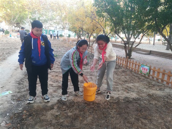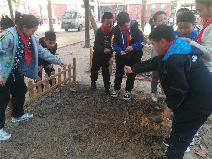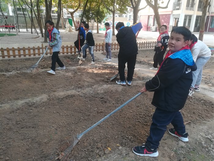 | 一节有意义的劳动课 今天下午,我在四四班上课,临近下课时,我询问同学们:“谁愿意大课间时,跟着我去学校分给我们的责任田里劳动?”,我话音刚落,“哗啦啦”举起了好多小手,有的干脆把胳膊伸的再长一点,生怕点不到自己,我于是在他们重多人中选了几个身强力壮的男生! 大课间时,我领着他们来到了四年级的责任田前,因劳动工具是两把平头铁锹,和两把耙子,于是两个同学捥地,两个同学平地,同学们真是平时没有接触过这样的劳动锻炼,捥地的时候,两个同学顺着地皮,只铲起了薄薄的一层,下面还是坚硬的土地,土壤不经过疏松,别说种菜了,种什么都不长。 到底是城市的孩子,没有接触过种地,对什么都很新奇,都想试一把! 于是,我让同学们聚拢到一块,我一只脚蹬在圆头铁锨的一侧,用力往下踩,一下子踩了铁锨的半刃深,然后翻起来再翻盖在土地上,我边做示范边给同学们讲解,同学们都很聪明,一讲一下子学会了。包括用耙子平地,我也给同学们做了示范,并进行了讲解。 同学们已经上四年级了,虽然个头小,但是也有把力气了,通过我的讲解,同学们拿着铁锹和耙子有模有样地开始干了,虽然挖地有点慢,但是还能基本按要求,把地整理出来,由生到熟虽然有一个过程,但是同学们都适应地很快,一会儿就把三畦地整理出来了! 该播种了,我拿着种子,同学们也心仪的想播种,争先恐后地伸着小手到我面前,我每人手里放了一把种子,交待他们,排着撒种子,两人包一格,不能有空隙,要把种子撒匀,因为这个季节适应种油菜,所以同学撒的稠点,稀点都行,他们很郑重地种下手中的每一粒种子,好像在种的时候,就看到油菜花开的样子! 种完以后,我又指导同学们用耙子轻轻地搂一下,让种子落在浅浅的土层下面,再用脚踩实落,保持水分! 同学们干的满头大汗,慢慢地学会了,熟练了,把地搂的很平整!然后撒点水,就结束了! 这是一节有意义的劳动课,通过这节课的学习和锻炼,同学们掌握了平整土地和播撒种子的本领,所以这是一节难忘的劳动课! |