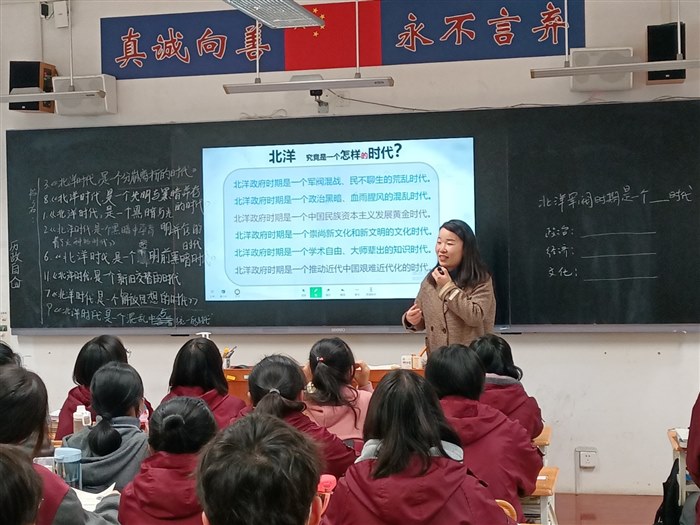马老师这节课的主题是《北洋军阀时期的再认识》,内容融合了北洋军阀统治时期的政治、经济、文化。
