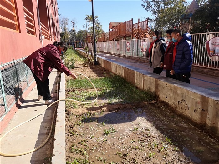 现实中总会遇到需要解决的问题。准备好浇水工具,发现水管开关离所浇菜园非常远,这是负责输入水的小组提出,用两段水管拼接的方式,延长浇水距离,并且在开水前,将水管拉到能浇到的最远的一块菜地,依次由远及近灌溉浇水,这个方法非常实用,保证工作效率,并且方便在有水的情况下缓慢移动水管,不浪费水资源。