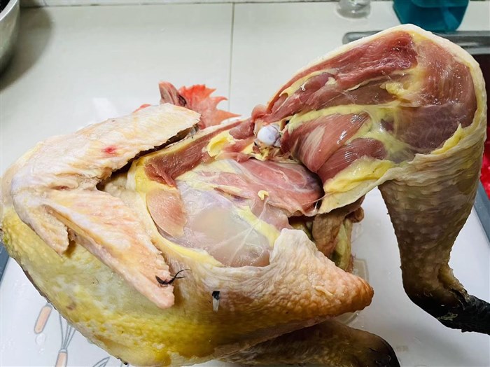 农家面蒸鸡是中牟县南部乡镇的一道特色美食。 昨天表弟又送来好几样吃的,一只土鸡已被他们用心处理干净,到家后,我直接把它放进冰箱的软冻区,这样能更好的保鲜,更重要的是拿出来剁的时候不会“血肉四溅”,由于是软冻,所以剁起来软硬适中,生肉类食品经过这样处理做的过程会省心很多,这都是在长期的厨房实践中总结出来的“生活真理”。 早上吃过早饭,开始分割鸡肉,鸡肉分割好后,葱、姜、蒜、花椒、料酒等调味品去腥入味,腌制2个小时左右,这样入味更好吃。今天准备尝试一下做个面蒸鸡,孩子姥姥会做这一道菜,所以孩子们也爱吃,今天又恰逢周末。这种做法感觉非常绿色,没有油的高温炙烤,没有烦杂的制作工艺,只是简单的去腥腌制,然后其它的交给时间和高温。
