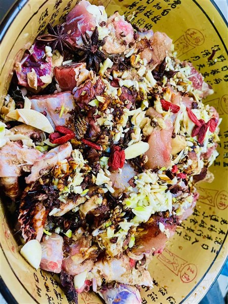 当肉腌制完成后,洒入适量的面粉就要上锅了,面粉的多少还是根据个人口味而定,想干一点口味筋道的的就多洒些,想软糯光滑一点的就少放点。然后,把它们交给时间和火候…… 小时候,家里也经常的养鸡,但杀鸡吃的记忆也仅仅是在过年的时候,平时如果没有重要的客人、重要的事儿(比如请媒人吃饭)一般的家庭都是舍不得的。母鸡下蛋,然后把鸡蛋攒起来卖了,换些零用钱。鸡蛋都舍不得吃的年代怎么可能舍得杀鸡吃呢!一家人的柴米油盐都指望它们呢!如果是公鸡,多半也是要拿到集上卖了的。平凡普通而又略显贫困的生活,都随着时光的流逝,淹没在时间的长河里,它也带走了我们无法挽留的挚爱亲人……