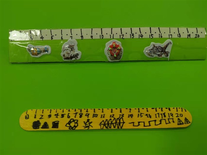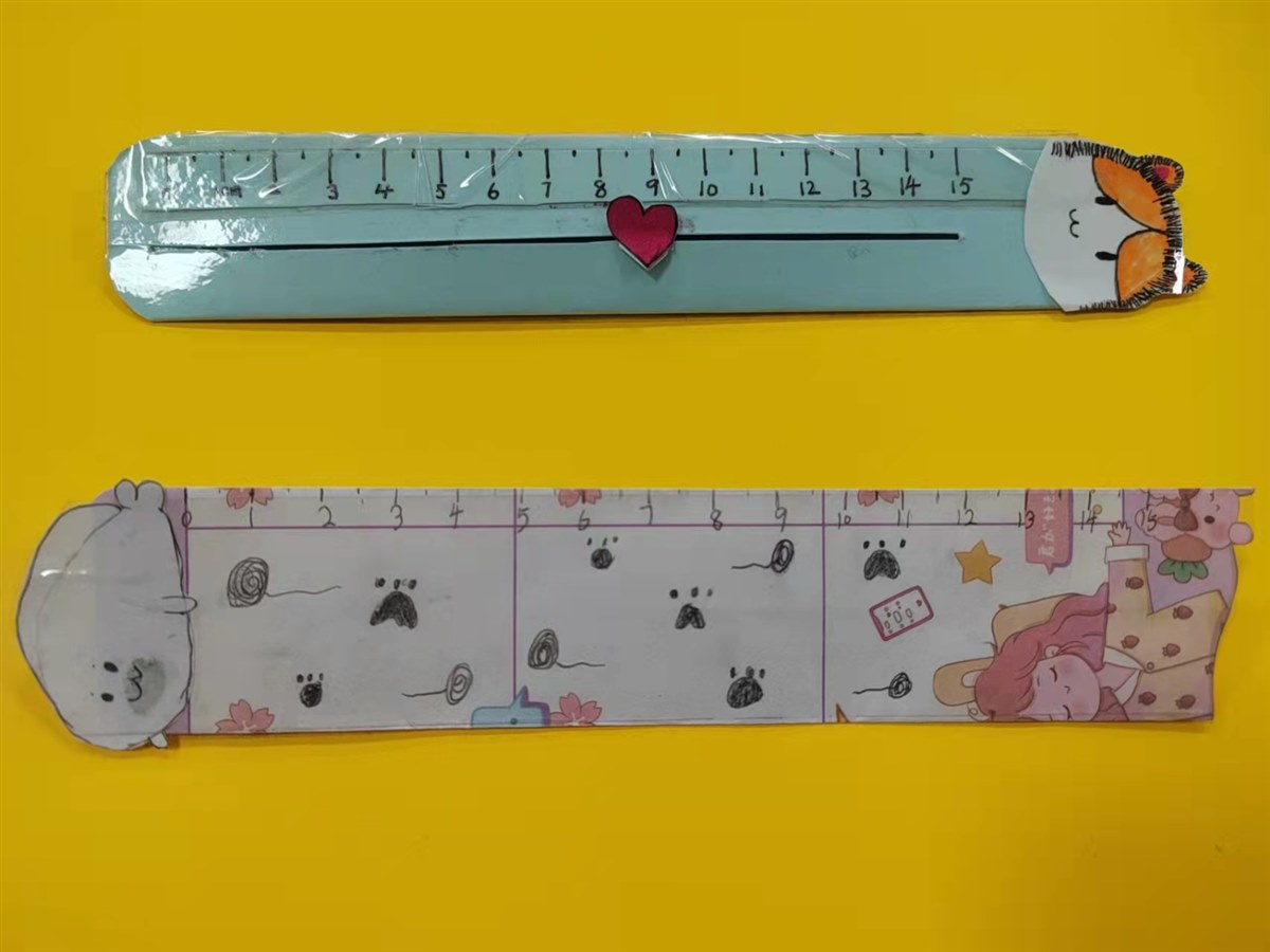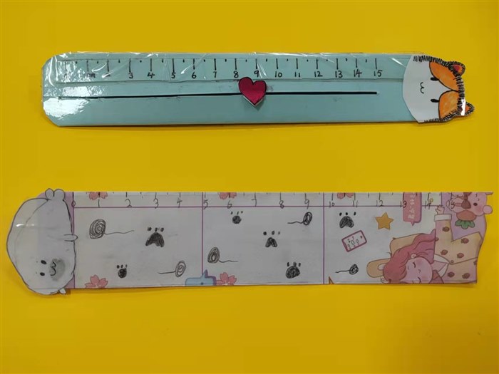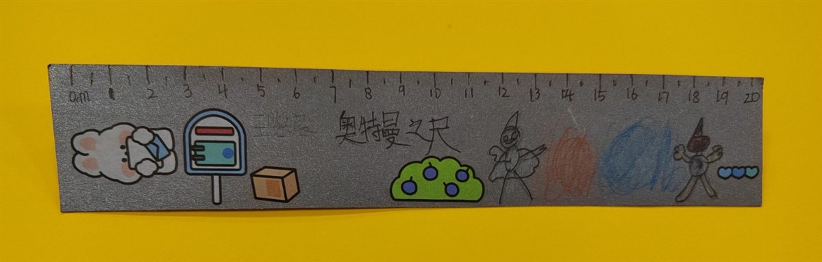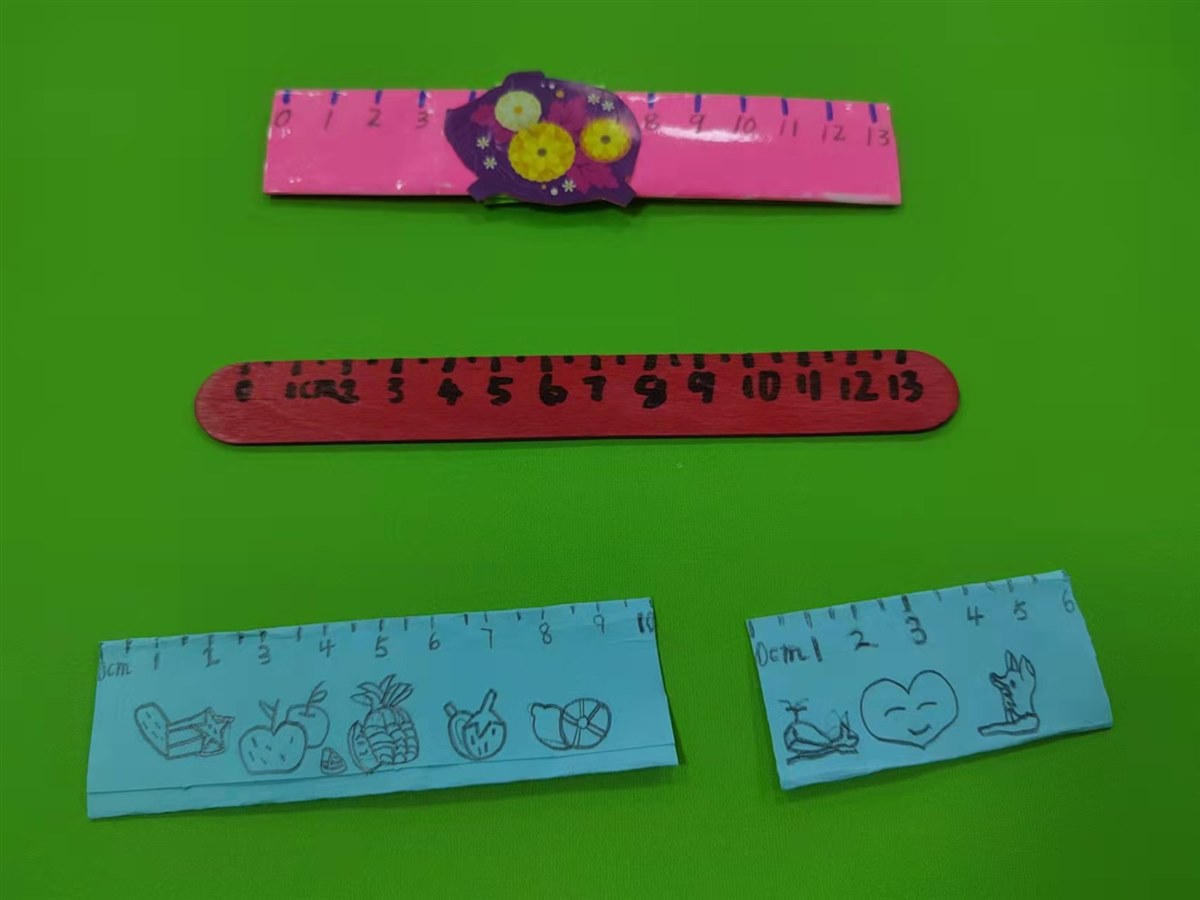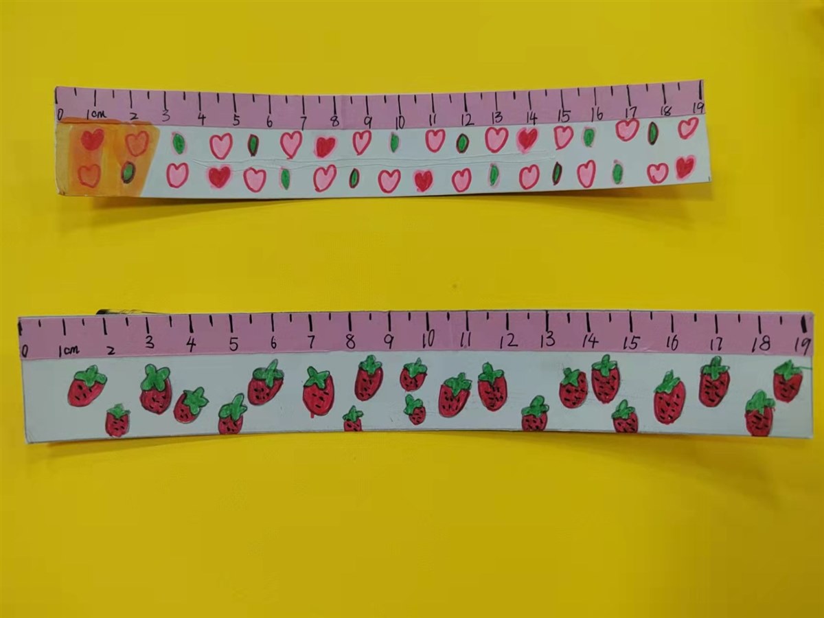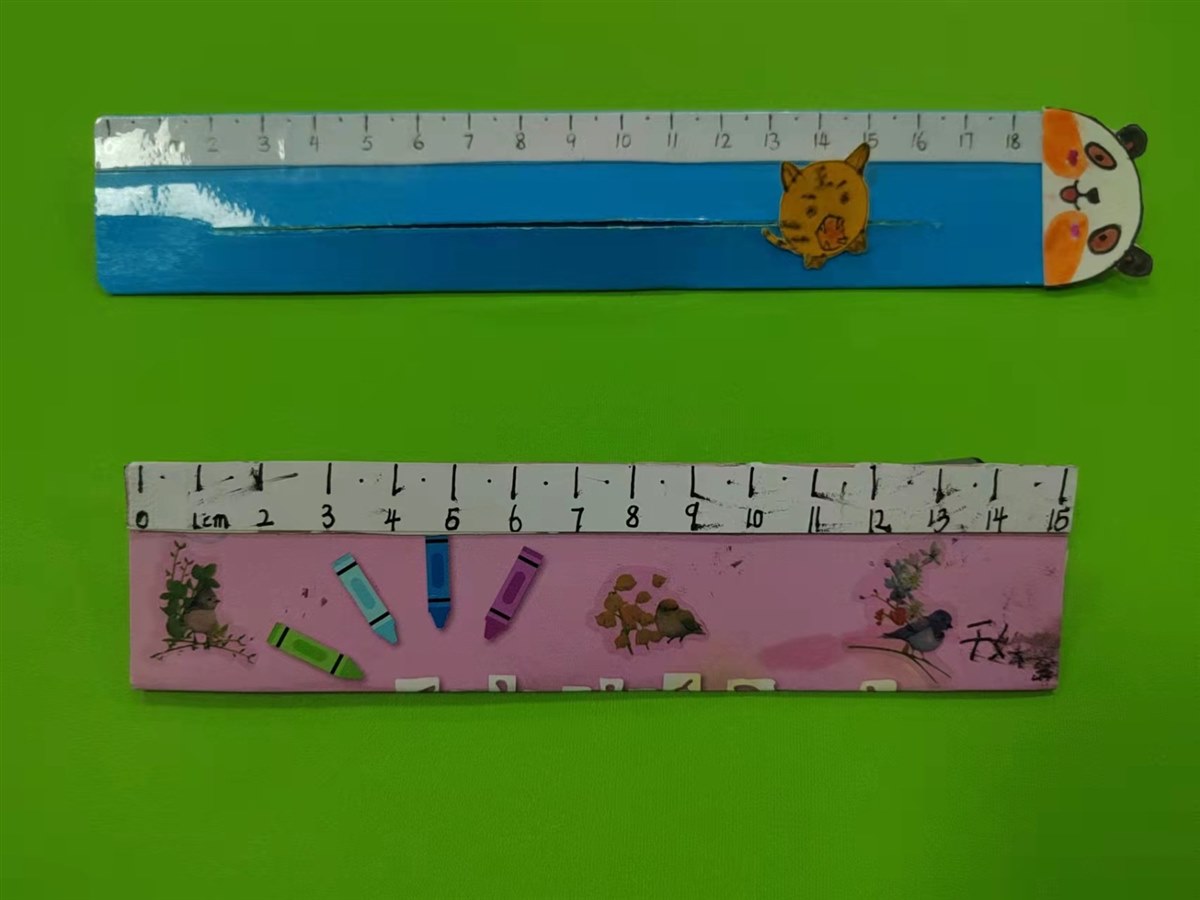 在学习“测量”之际,为了更好地认识厘米尺,我们布置了有趣的任务,当一回小小设计师-制作厘米尺。瞧,孩子们的作品多认真啊!