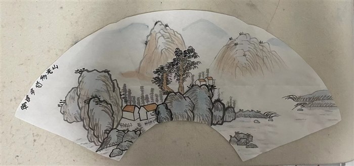 学花鸟时正是暑假,时间比较充裕,空余时间会跟着体验课画画,偶尔也会预习下一课时的内容,画了山水课中的前幅作业,画的不怎么样可在涂了颜色之后看上去也有一点点感觉,自己觉得掌握得还不错。