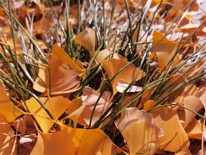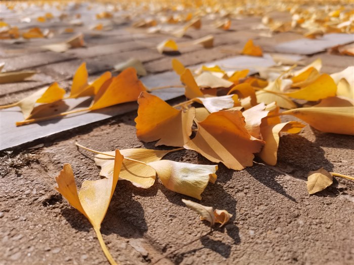 人与自然之间总有某一种默契,看不见说不出来,但却紧紧的拥有了,那是我和这片片叶子之间,一种心灵相吸的感觉,我是多么喜欢这种感觉呀,一片有一片的色彩,一片有一片的感觉,一片有一片的美,一片有一片的魅力,无论是邂逅还是偶遇,都是美的遇见。无论是早起的太阳,还是微落的夕阳,只要是阳光洒落的地方,一颗一颗的银杏树,总是天下最美的色彩。