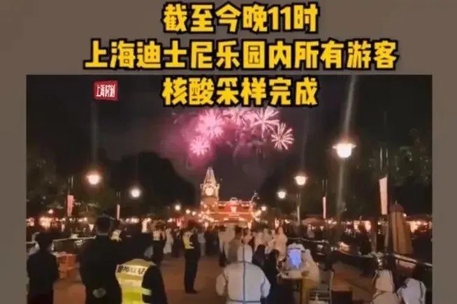 新闻转播中:闭馆、拉起警戒线、医务人员进场,3万多游客被要求留在园内做核酸。所有人都以为形势趋向紧张,现场甚至有家长和孩子,因为担心而情绪濒临崩溃。这时,广场上奏响圆舞曲,灯光秀闪亮映射,连万圣节的烟花也开始点燃。于是人们一边排队检测,一边望着不远处,绚烂如童话般的烟火。