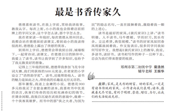今天,郑州日报刊发我的作文《最是书香传家久》,让我能够以这样一种庄重的方式,用文字向广大读者分享我的家风故事,很幸福。
