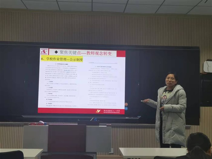 为全面落实《郑州市高新区管委会社会事业局关于进一步加强中小学作业建设的通知》 和《郑州市高新区义务教育学校作业管理工作实施方案》的要求,进一步规范学校教育教学管理,全面提升教育教学质量,提高作业设计质量和作业管理水平,发挥作业的巩固与延伸功能,促进学生核心素养发展,2021年12月15日下午,郑州高新区初中数学学科开展了“双减”背景下作业优化与命题设计三级工作坊专题会议。本次会议由高新区初中数学教研员、高新区初中数学工作坊主王红远老师主持,学区工作坊坊主臧素珍、任真真、王玉慧带领学校坊全体教师参加。