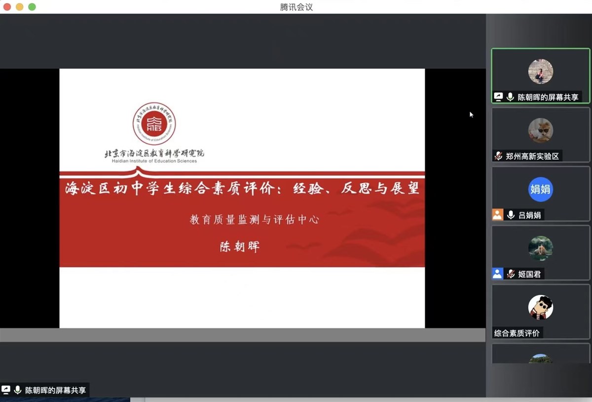 12月15日上午,围绕“如何有效深入开展综合素质评价”这一问题,高新区社会事业局教研和智慧教育发展中心特邀北京市海淀区教育科学研究院陈朝晖教授,做《海淀区初中学生综合素质评价:经验、反思与展望》专题报告。会议以腾讯会议形式举行,河南大学专家团队、全区初中学校项目主管校长、综合素质评价团队成员参会。