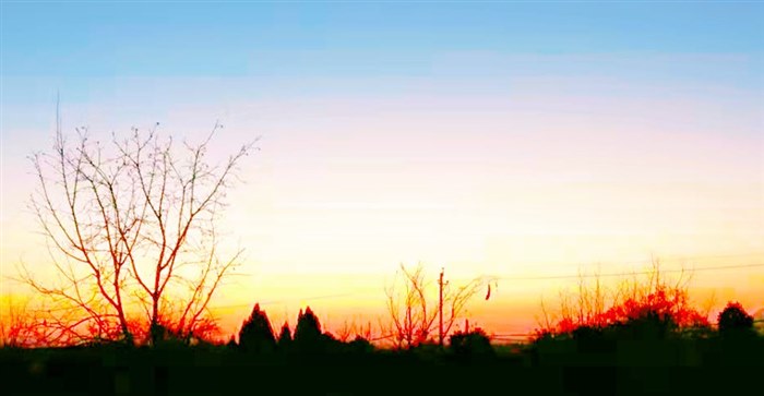 仲冬幕垂,日浑雾升。繁华褪尽,山野简静。鸡睡狗歇猫儿眠,枝秃叶聚人安然。
