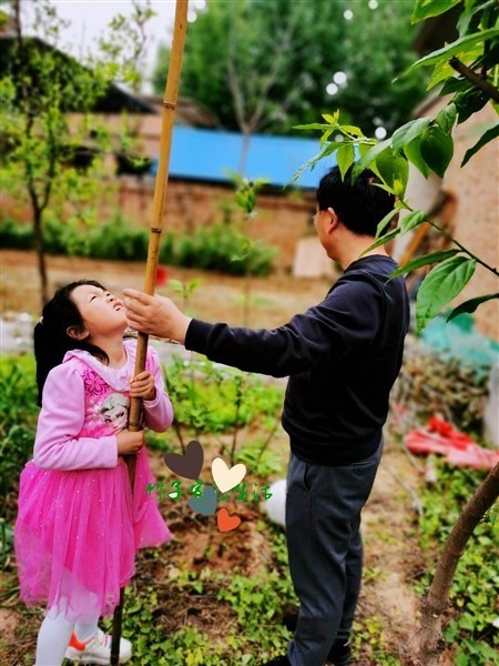第一次和爸爸一起,从香椿树上铲下树叶,放在嘴里品尝发现树叶可以吃。