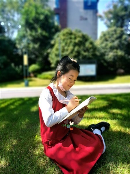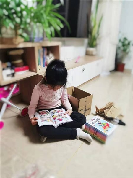 她一如既往地喜欢看书,回到家扔下书包,第一件事是找吃的,找到后会蜷缩在沙发上,或席地而坐,沉静在书的世界中。