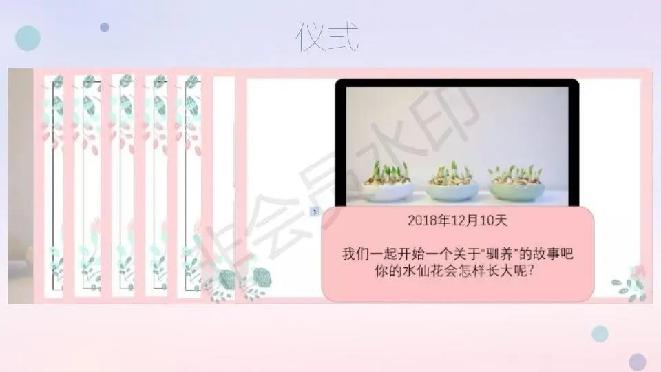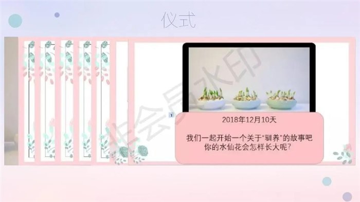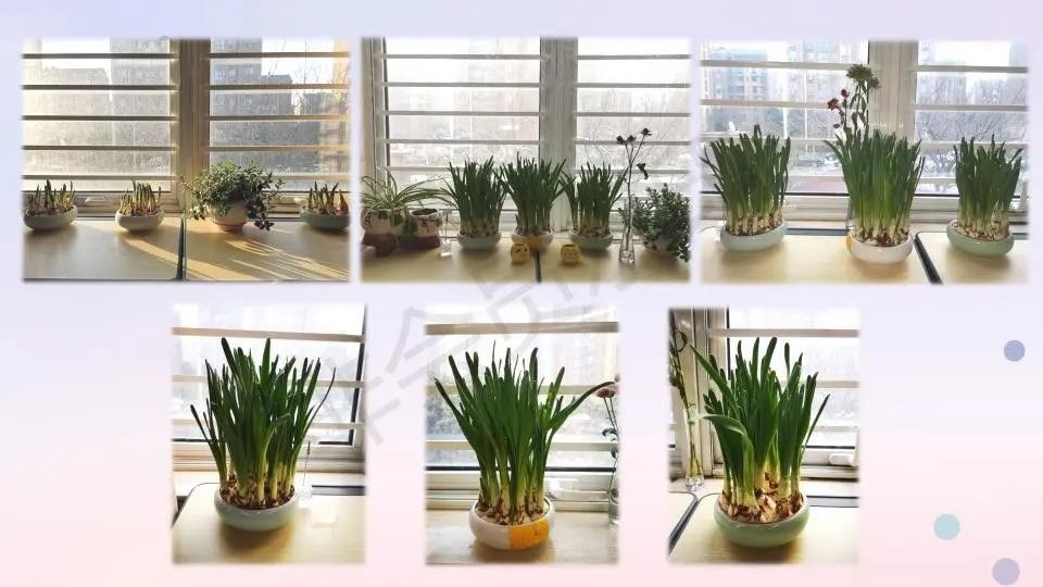 回去上班那天,我悄悄带到办公室,在暮省的时候特地让孩子们打扫了教室卫生,还整理出两张桌子,做了一个PPT,用一个隆重的仪式把水仙送给他们。