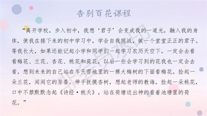 我们一起感受了梅花傲骨,兰草幽芳,杏花疏影,桃之夭夭,