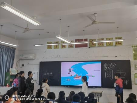 学生在进行故事展演的过程中,学生会深入地理解故事内容,将故事中核心的内容进行表达。通过展演的形式,更好地促进学生对故事的理解。同时,通过表演的过程,也不断地帮助学生深入的进行思考,把握故事的数学中思考的价值,不断地引导学生在表演过程中提升数学阅读的理解和想象。阅读的是虽然都是文字,但展演出来的却是一个个生动的故事,学生在展演的过程中能更好地促进学生的发展。
