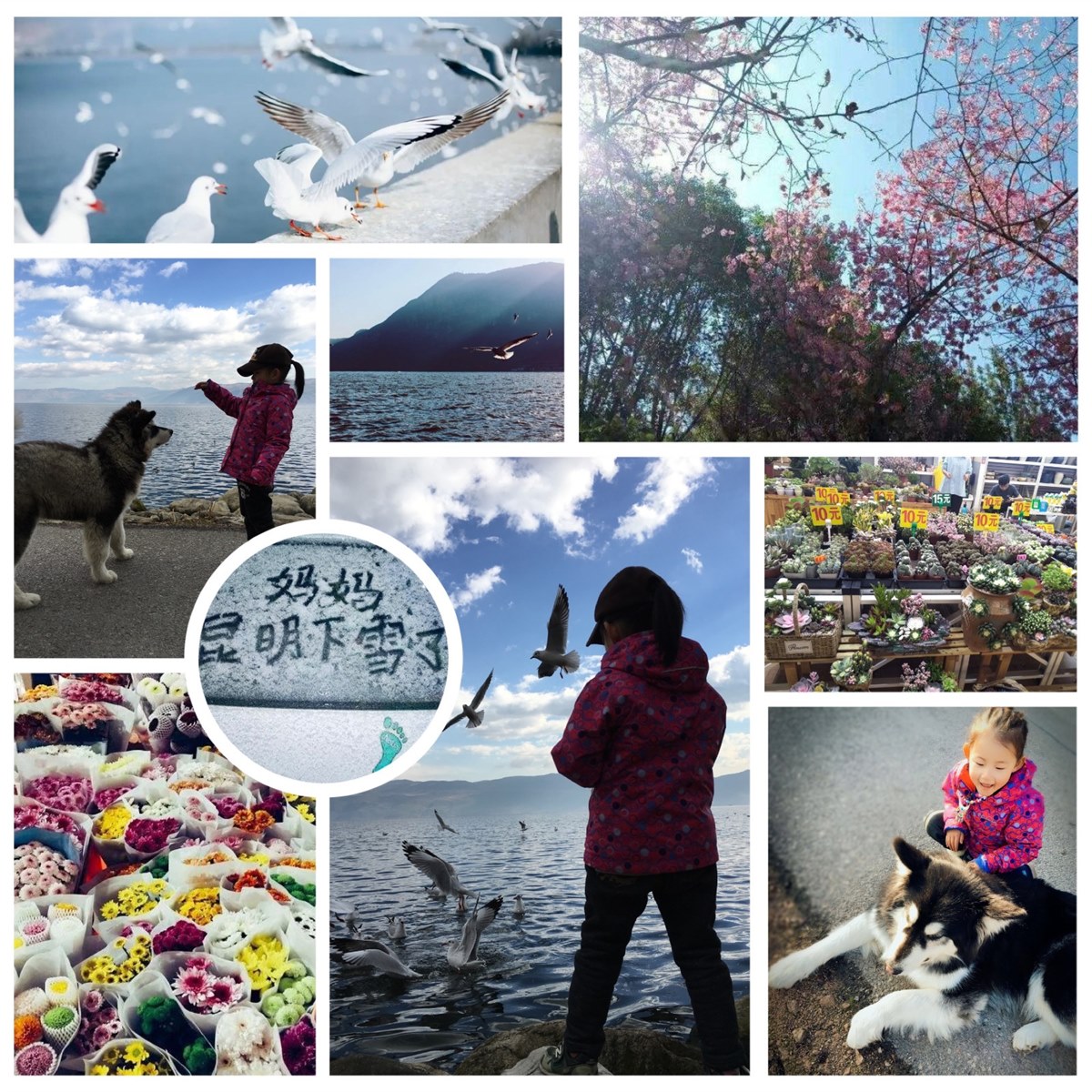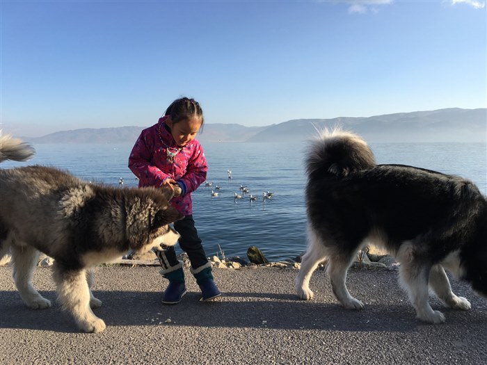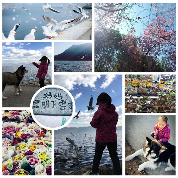 红嘴海鸥和雪橇犬,都是我的伙伴。滇池微波粼粼,在去海埂大坝的路上,只要把带来的面包,揪成小块儿扬在蓝天里,飞翔的海鸥就会将我环绕,明亮的眼睛配上圆滚滚的身体,一点也不像长途跋涉而来的精灵。海鸥与昆明人共同生活,早已不是节令迁徙的惯性,而是习以为常的亮丽风景。在西山脚下,许是见我带足了食物,两只毛茸茸的大狗也贴着我卖萌。爸爸和狗主人亲切的交谈,我则和新认识的“朋友”比个头,做游戏,以至临行时约定再相见。第二年我专程去看它们,小点儿的狗已经送人,大的那只竟然真的还记得我,任由我躺在身上,把我护在身边。那一刻,我想我们都在惦念曾经共同的玩伴。