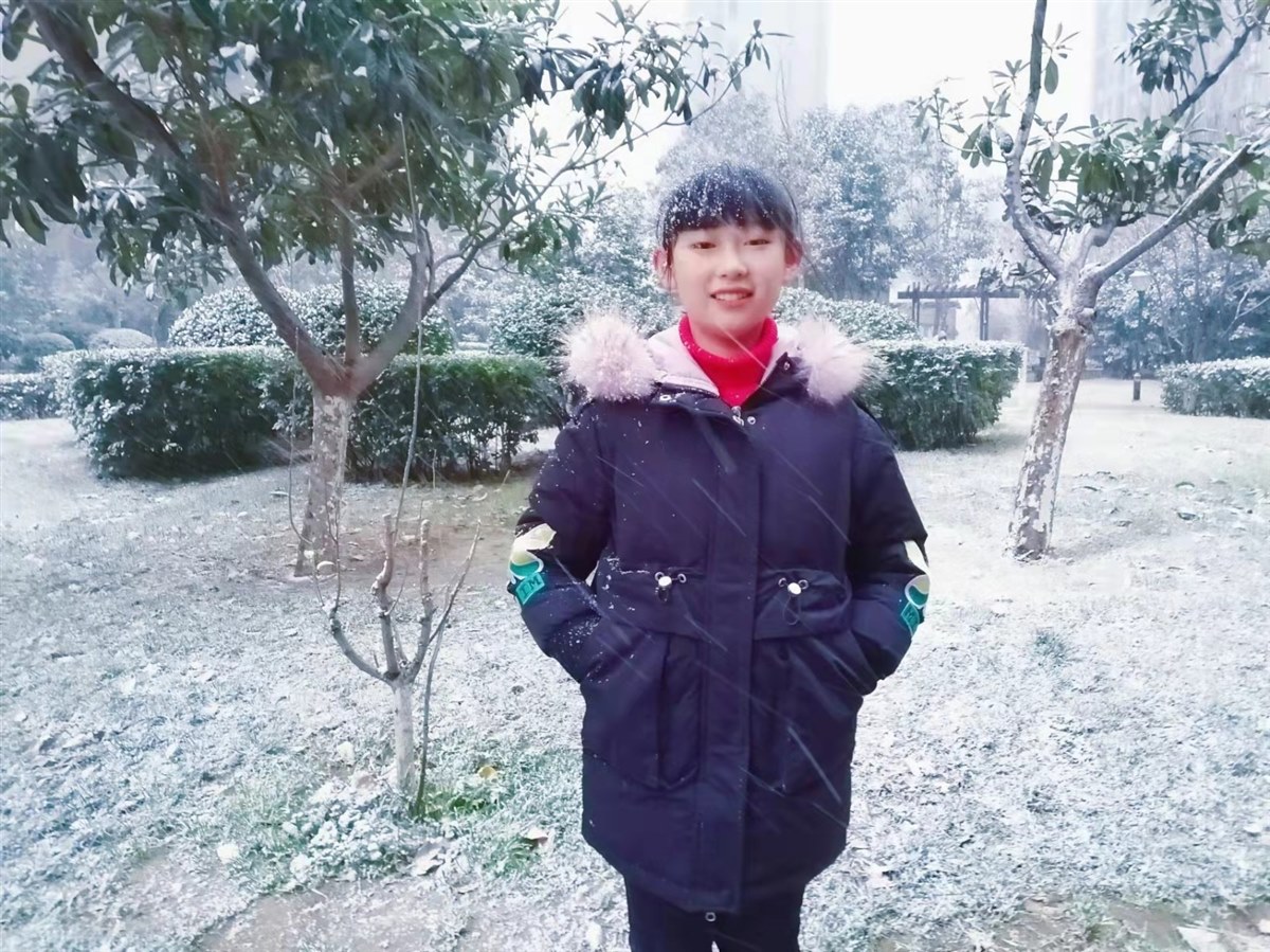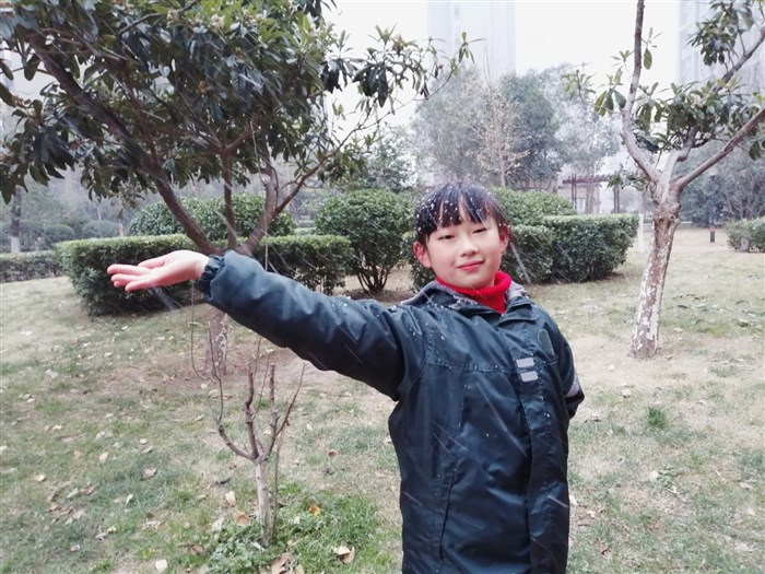 | 2022年的第一场雪仿佛换装秀 在这寒冷萧瑟的冬天,我最盼望的就是看到下雪了。今天下午,我终于如愿以偿,看到了盼望已久的雪。这是我刚迈入2022年,看到的第一场雪,这场初雪仿佛是大自然给大地进行了一场换装秀,带给了我无限的惊喜,令我兴奋不已! 下午放学,我看到板起脸的天空落下了一颗颗小小的雪粒,先是稀稀疏疏的,后来越来越多的雪粒就像空中有人在抓着大把的白砂糖,一把把往下撒。这些雪粒随着风吹的方向,密密地斜着飞过来,飞落在我的冲锋衣上发出噼里啪啦的声音。我在小区里把眼镜和口罩取下,仰着脸,尽情地感受着初雪带给我的快乐。  “媛媛,该回家了,等雪下大了,再出来欣赏雪景吧。”耳边传来了妈妈的声音。我只好依依不舍地离开了小区,心里特别希望雪能下得更大些。 回到家半个小时后,正在书房学习的我看到窗外大雪纷飞。于是,我央求妈妈和我一起下楼欣赏雪景。妈妈同意了,我高兴地一蹦三尺高!我出了电梯,一路小跑到小区,看到了惊喜,大地都披上了洁白素装,一棵棵树上仿佛满树的梨花盛开。此情此景,让我不由得想起了一句诗“忽如一夜春风来,千树万树梨花开。”“妈妈,没想到才一会儿时间,大自然就给大地换了衣服,仿佛一场换装秀。”我一脸惊讶地跟妈妈说。“是啊!大地换装了,你也换装了。”妈妈笑着说。我抬头看到大片大片的雪花从银灰色的天空悠悠飘下,似满天白色的蝴蝶在迎风飞舞,似鹅毛飘散,似少女翩翩起舞,似一个个顽皮的孩童在白茫茫的空中调皮地追逐、玩耍。呀!我黑色的羽绒服上不知何时已缀上了一些雪花图案,那么醒目,那么美。我睁大眼睛,入神地欣赏着银装素裹的世界,仿佛自己置身于童话世界。  不知不觉,天黑了,地上像铺了一层软绵绵的白色地毯,踩上去咯吱咯吱地响。我依然舍不得离开,时而静静地欣赏着灯光下飘舞的美丽雪花,时而开心地玩雪球儿……我爱2022年的第一场雪,爱大自然如同魔术师般给大地进行的一次换装秀。  |