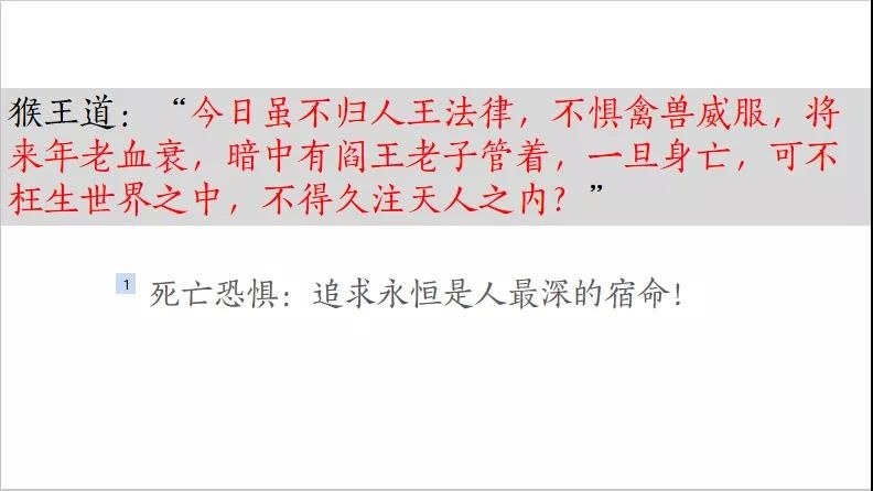 当我们在“孙悟空”的章节里,讨论到“死亡”的时候,小胡同学写到: