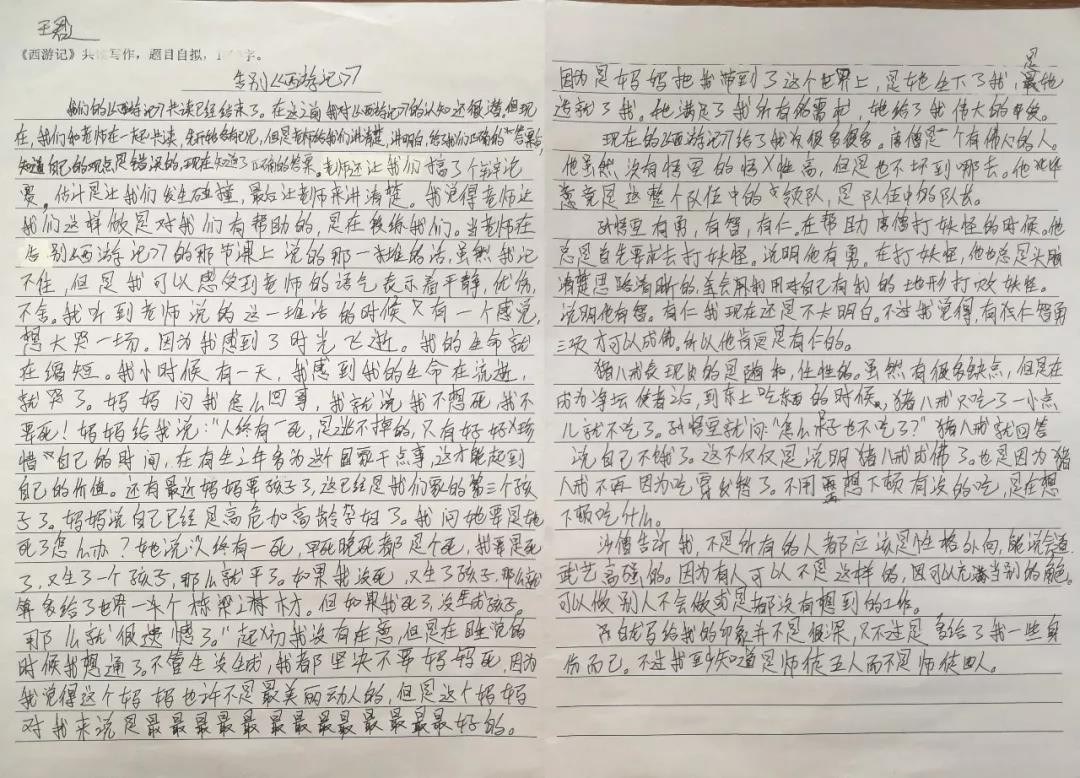 今天我们共读《西游记》,老师谈到一个话题:你怕死吗?当时我第一个反应是‘不怕死’。死不是一件很正常的事情吗?人的一生,生下来注定有事情,你才会来到这个世界上。我以前一直觉得死亡是无可避免的,人的一生都会死亡,如果一个人不会死亡,他在这个世界上或许就没有意义,因为生命没有紧张感和满足感。但我想了很久,还是会有些怕死。‘死’这个字本身是没有恶意的,但它带来的结果似乎充满了罪恶,它终结了一个人的生命,结束了一切美好。最后,我又想了想,死亡也是有死亡的道理的,还是不要怕死。既然知道死亡是不可避免的,那就珍惜现在的每分每秒吧!