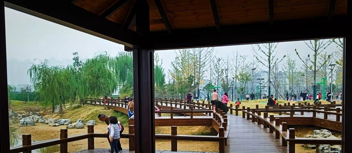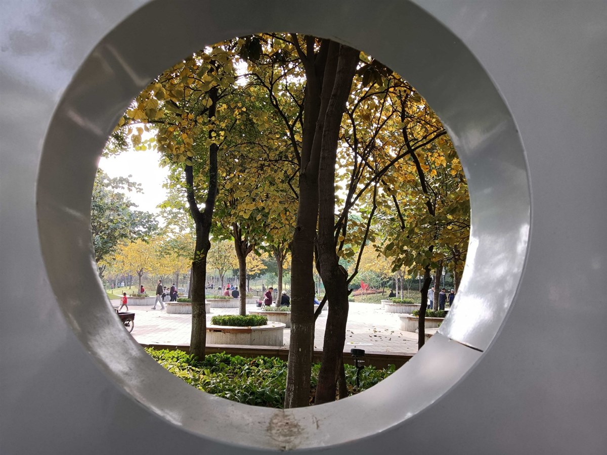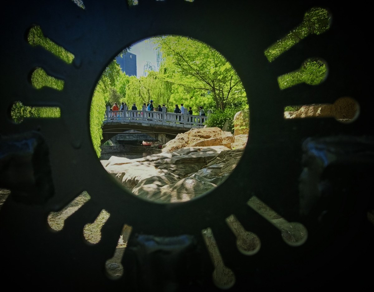 4月。郑州人民公园乐游的市民。景随步幻,步变景移。“一孔窥天下”,美景尽眼中。