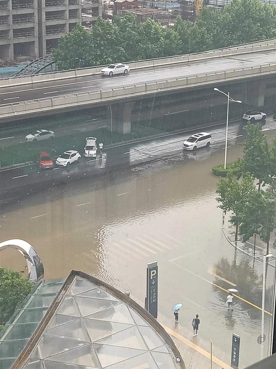7月。20日郑州遭遇大暴雨。两天后的积水和绿化带里的车子。我们在灾难中学会坚强,学会大爱,学会面对……