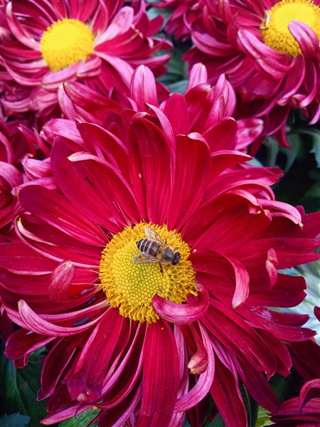 10月。菊花绽美。连勤劳的小蜜蜂都想一亲芳泽带走满腮蕊香。