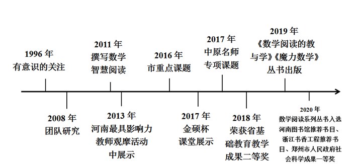 我们在进行数学阅读的过程中,先后编写了适合学生阅读的《魔力数学》丛书,我出版了教师如何进行数学阅读的《数学阅读的教与学》一书。如果以时间为轴,可以将我们开展数学阅读的实践历程做如下梳理: