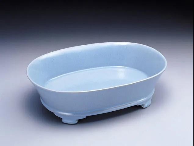 一日,徽宗忽然驾到,看到爱妃正对着一个盆发呆,心中甚是困惑。再看这盆,只见色泽似玉非玉,美妙的天青色透着静谧和神秘,一时惊为天作。细看,并不是宫中之物。这徽宗除了治国无能,琴棋书画是无所不能,瓷器鉴赏也很有造诣。同时,他也是历史上著名的信奉道教的君主,崇尚自然含蓄、大道至简的审美观,追求的是“天工与清新”的境界,水仙盆这可遇不可求的天青色,正中了他的意。